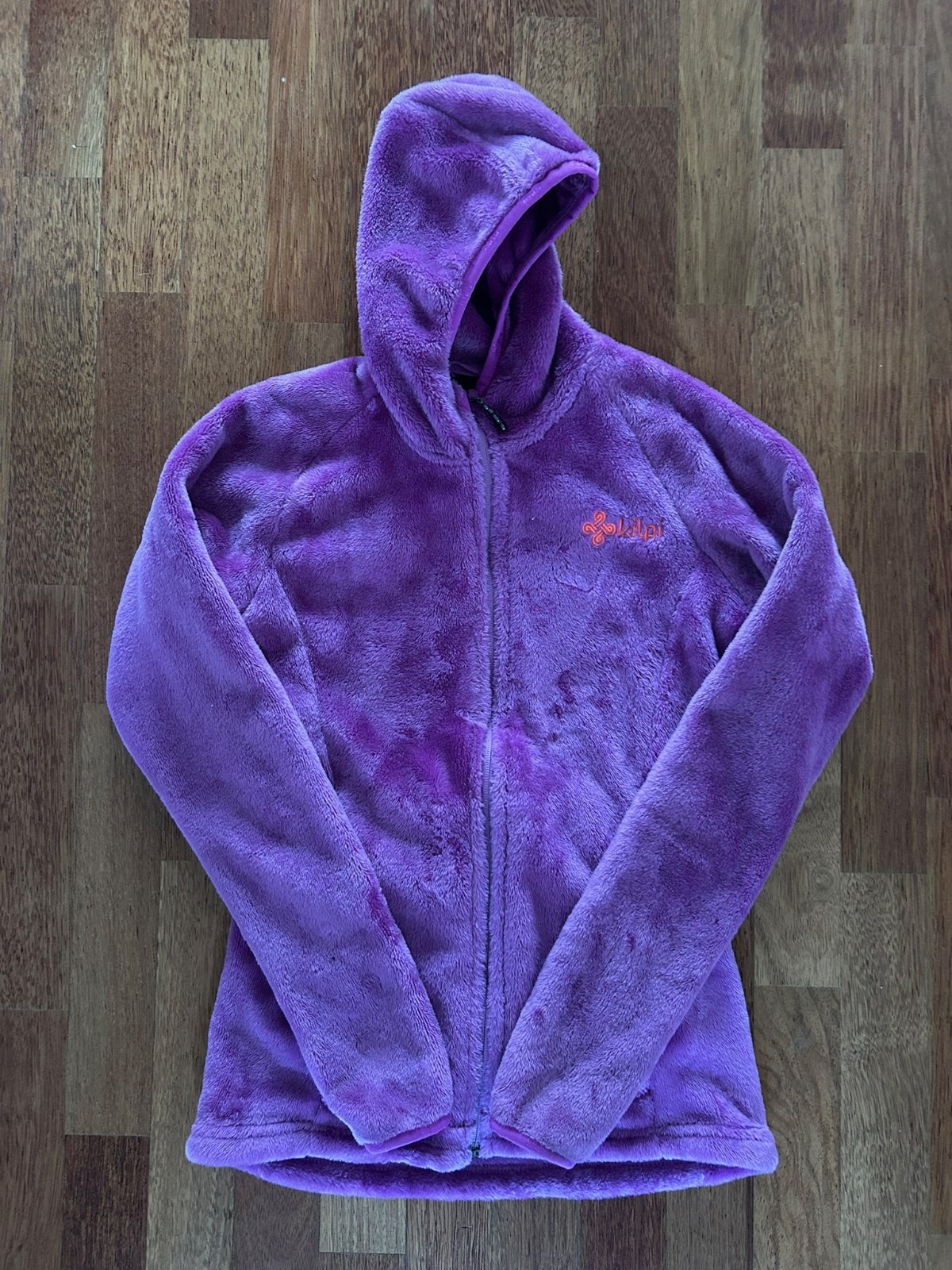 Mikina bola málo nosená, aj to len doma, má jeden fliačik, všimla som si to pri fotení. Možno sa dá odstrániť. Farba fialovo-sivo-čierna. Veľkosť uvedená 146/152, zodpovedá XS - dĺžka 54cm, pod pa...