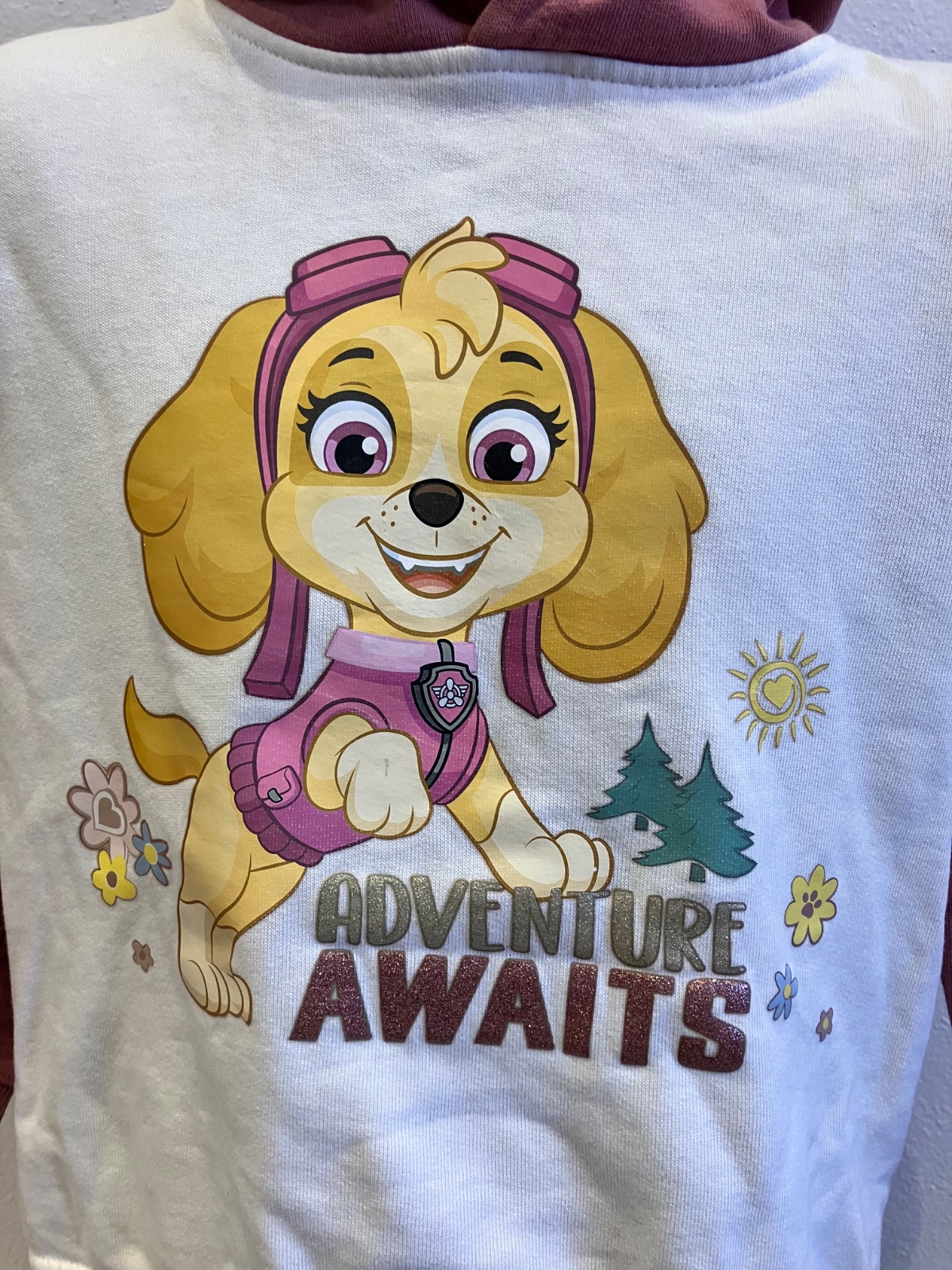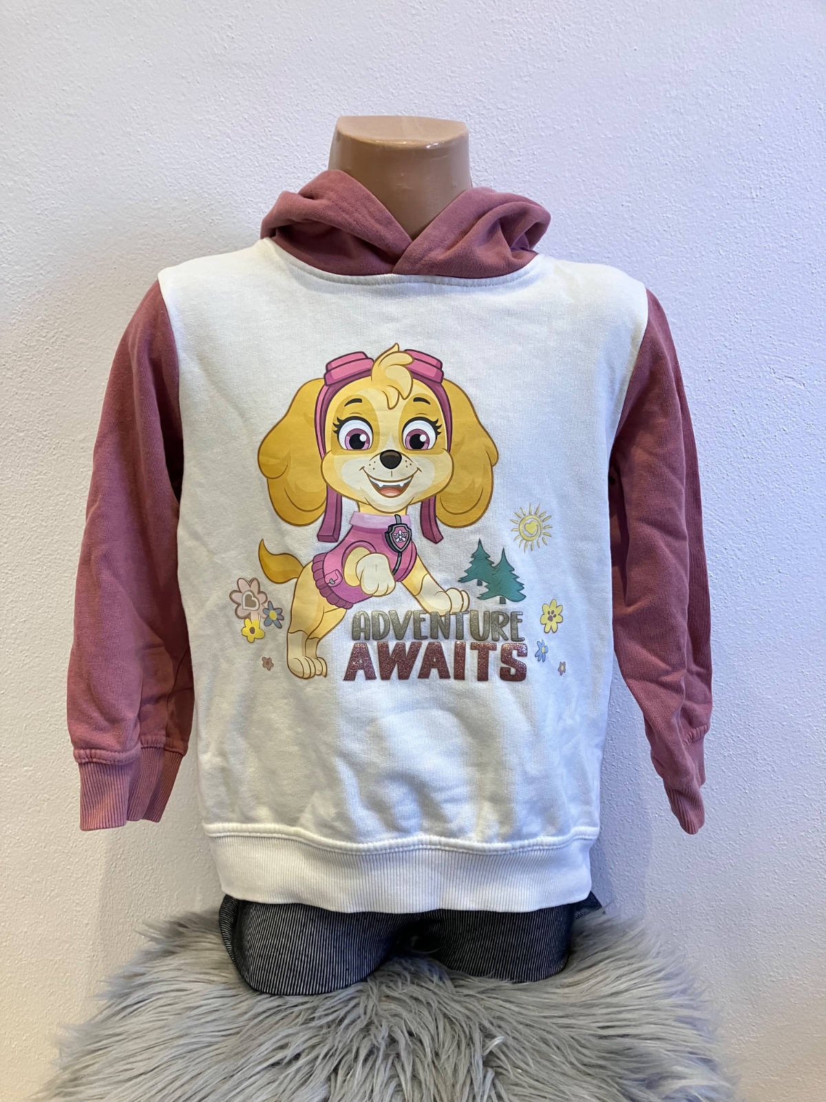 Dievčenská mikina s kapucňou, potlačou a nápisom, nápis je lesklý, jemne elastická, vo vnútri jemný flís, materiál 100%bavlna.