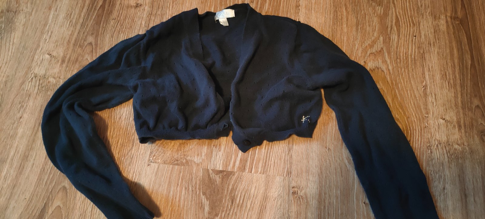 Krásne elegantné bolerko Coccodrillo, top stav. Veľkosť písaná 116, ale podľa mňa je väčšie, riaďte sa rozmermi. Bolerko je nové, kúpili sme ho na svadbu pre dcérku ale nakoniec sme ho nepoužili. D...
