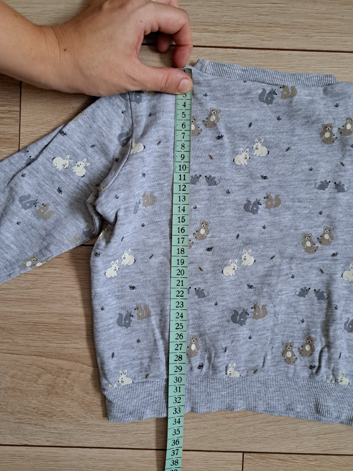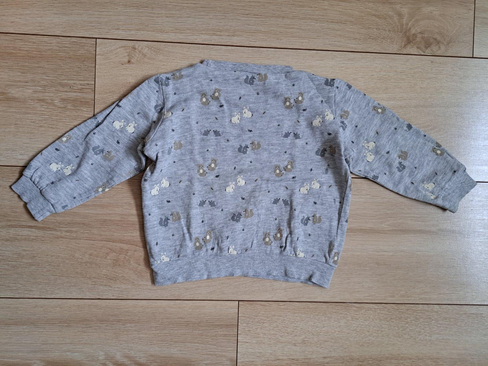 Tenká mikina značky H&M s výborným zložením = 95% bavlna, 5% viskóza. Kráany vzor so zvieratkami - zajačiky, myšky, veveričky a medvedíky. Pekný nosený stav, trochu už vidno pranie a má jemný hnedý fliačik vzadu na rukáve (posledná fotka).