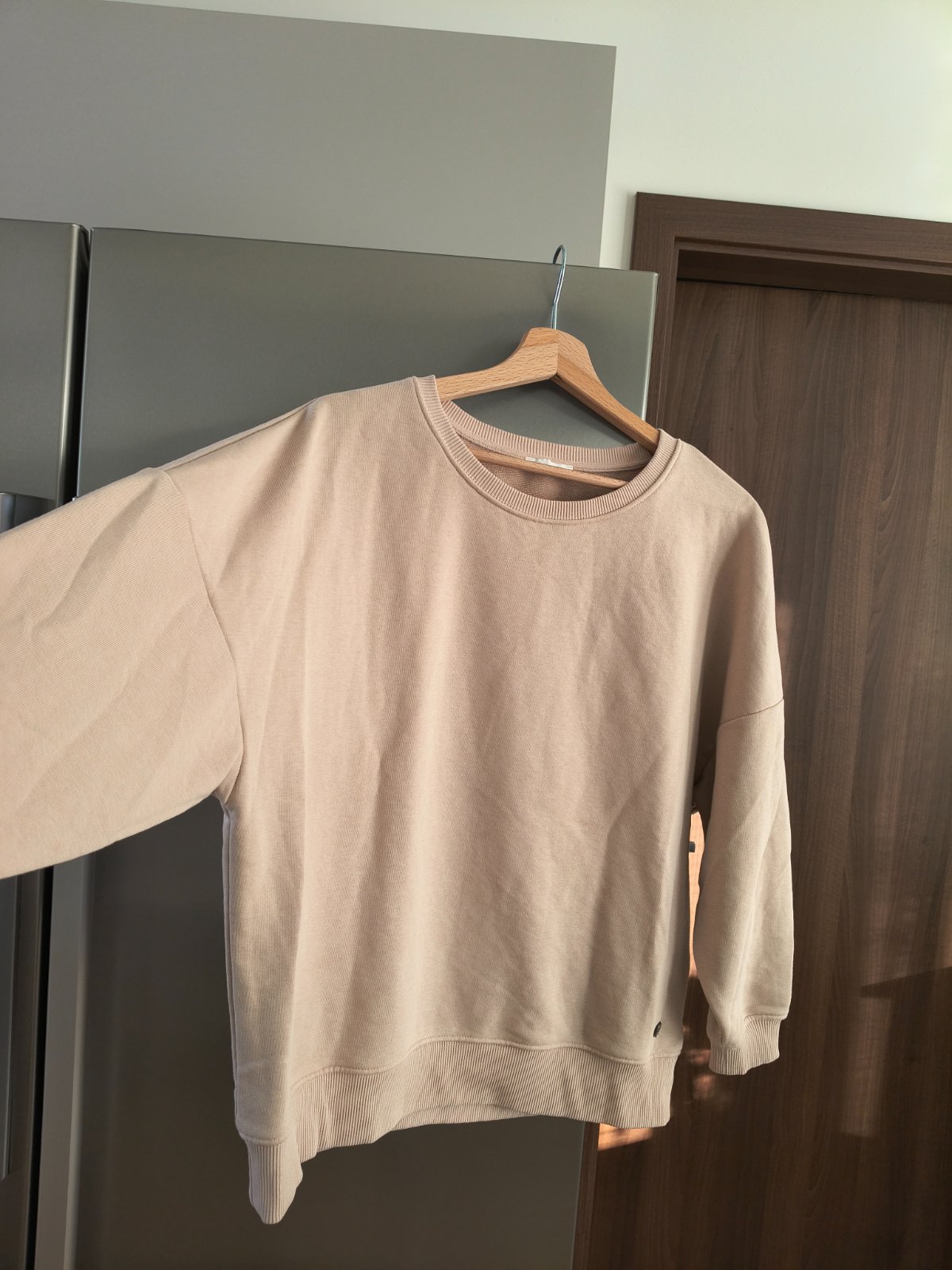 Veľkosť písaná XS, sedí skôr na M-L veľkosť,je to voľný oversize strih, krásna fakt kvalitná,3/4 padnuté voľné rukávy 🥰je ako nová bez známok nosenia 👍 dĺžka 63cm, šírka hrudník 60cm, púdrová-telová krásna farba