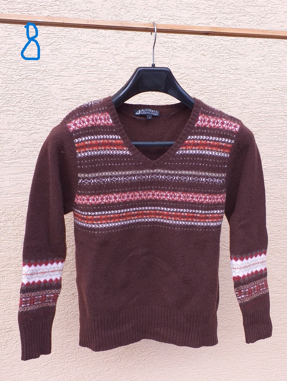 Hnedý sveter, dĺžka 56 cm, šírka 43 cm, dĺžka rukávov 54 cm, málo nosený, 4 eurá+poštovné