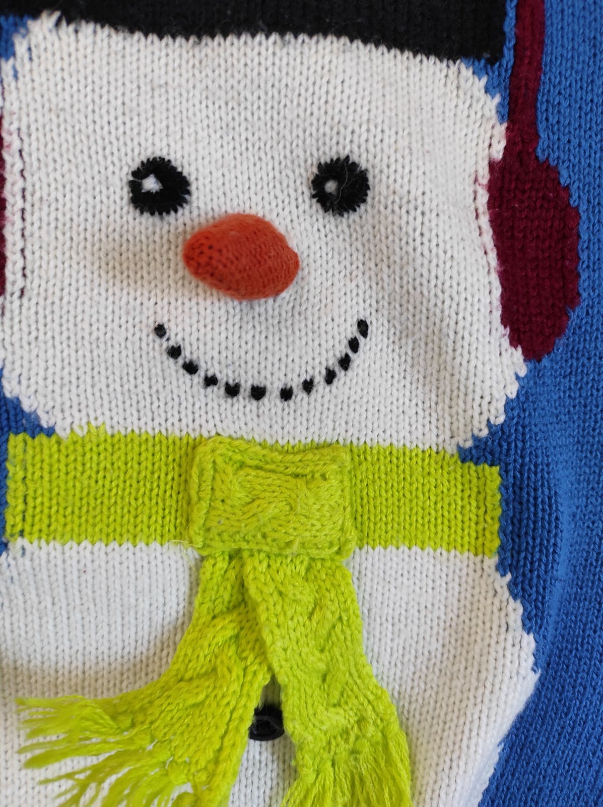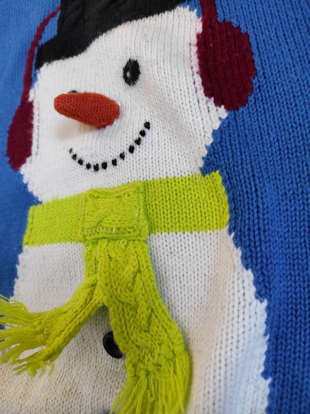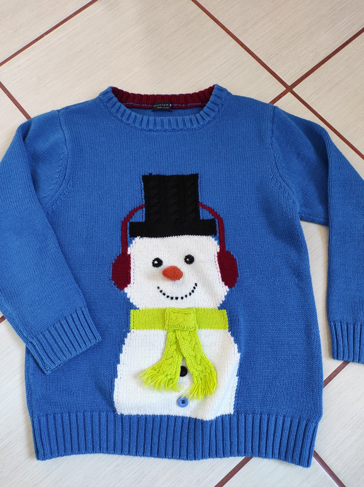 Úžasný svetrík s aplikáciou snehuliaka, 3D nosa a šálu.