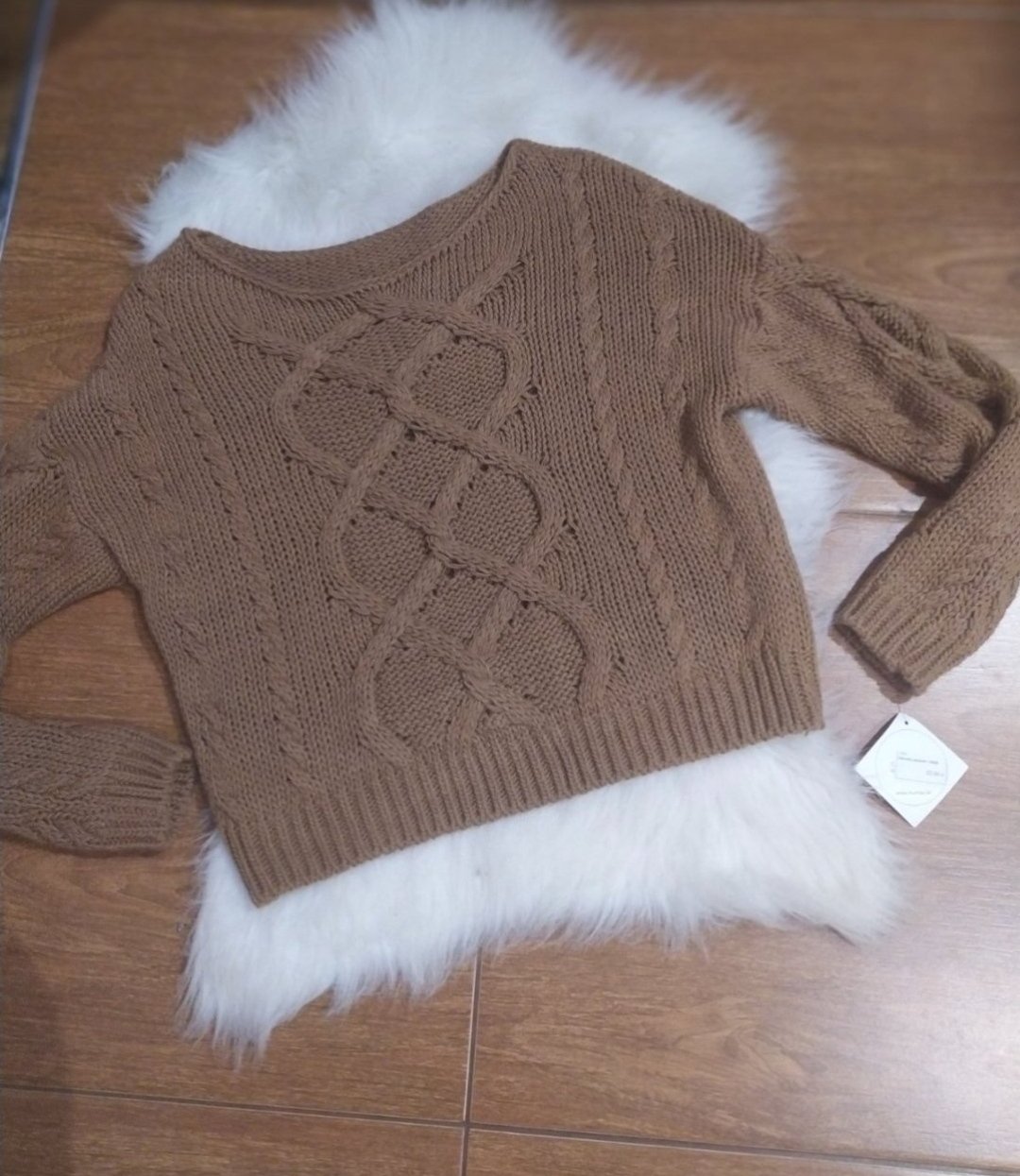 Dámsky voľný štýlový sveter. Pletený. Ležérný strih, hrubší, okrúhly výstrih. Materiál: 52% acryl, 28%polyamid, 20%bavlna-polyester. Veľkost UNI (S,M,L,XL). Krajina pôvodu:ČĽR. ROZMERY: Celková dĺ...