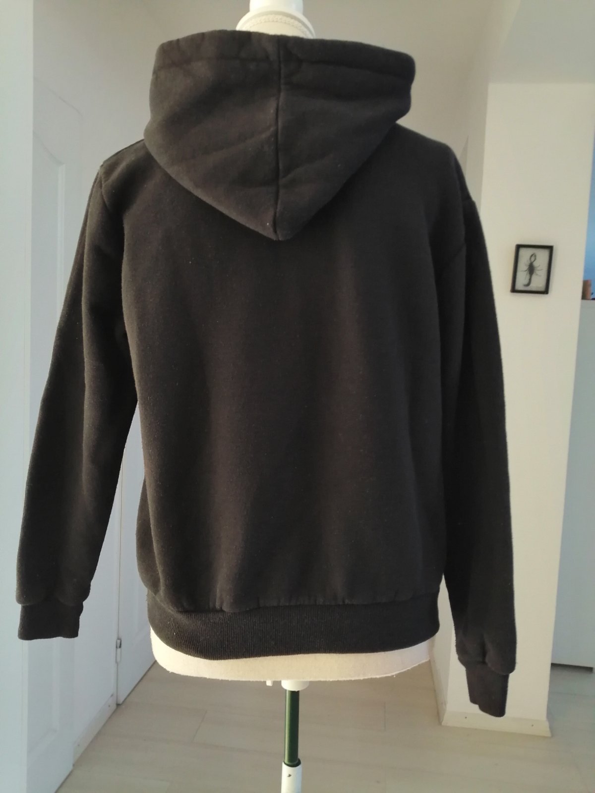 Minimálne nosena znackova mikinka, obvod hrudnika je 112 cm, rukavy 57 cm a dĺžka je 56 cm
