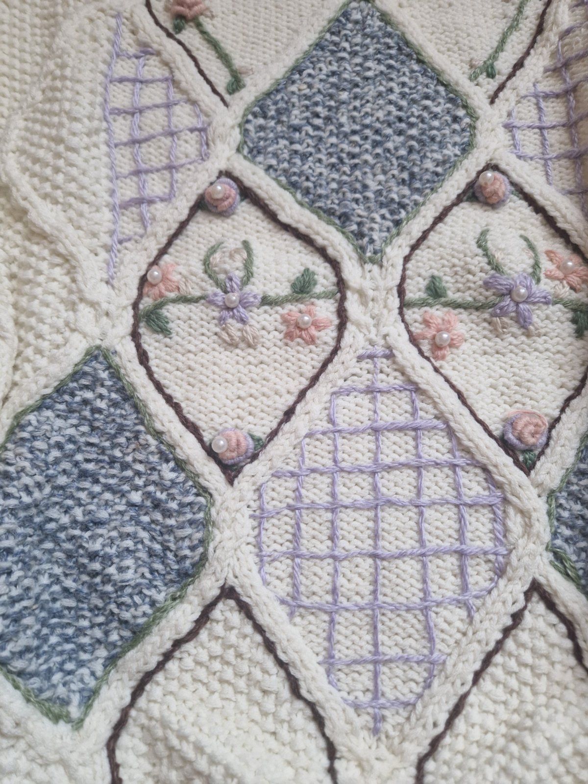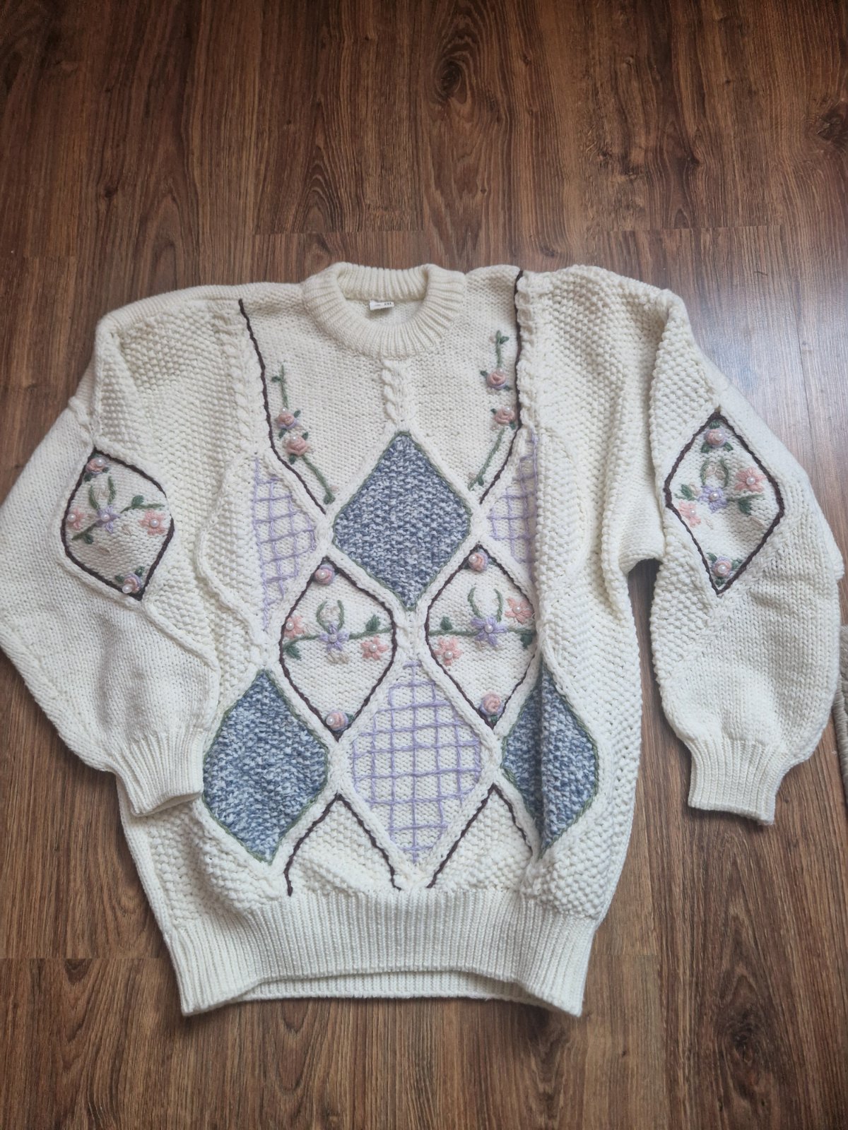 Vysivany vlneny sveter kremovej farby. 65% acryl, 35% vlna. Dlzka 70cm, sirka 51cm. Velkostne oznaceny ako XXL. Nenoseny.