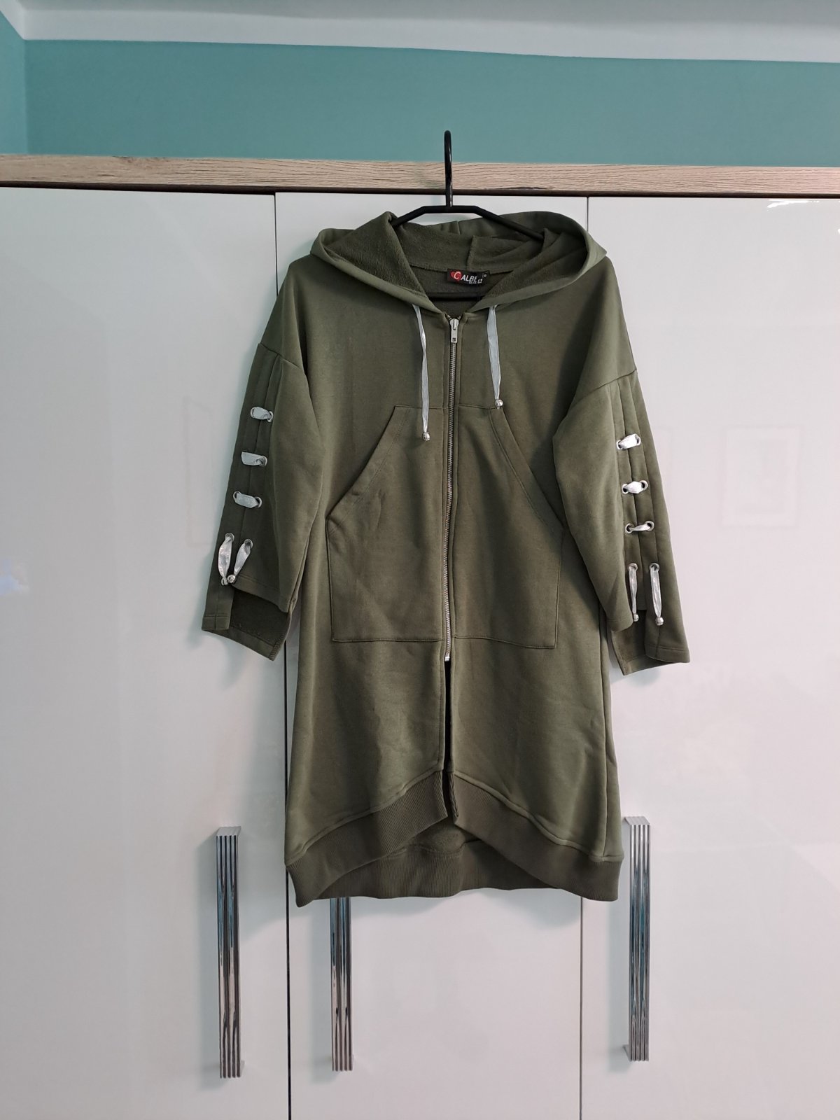 Tmavozelená mikina s kapucňou značky Calben Fashion.