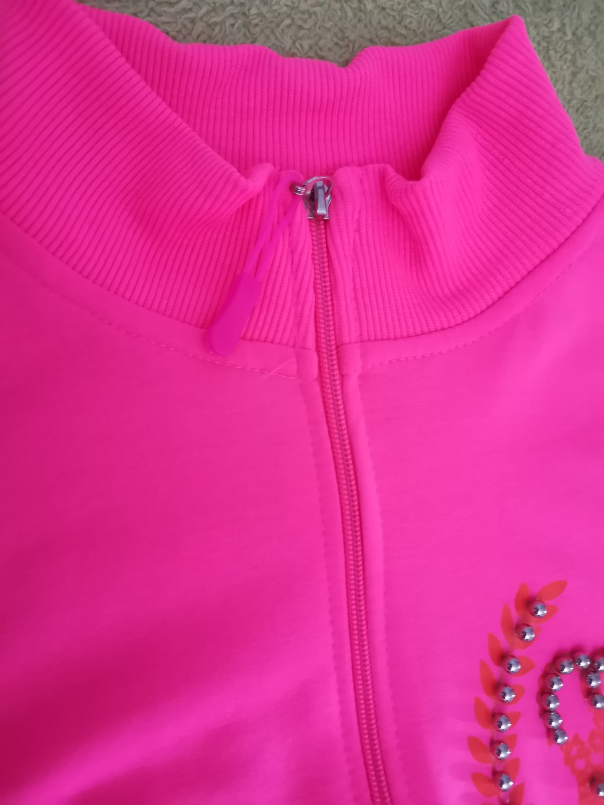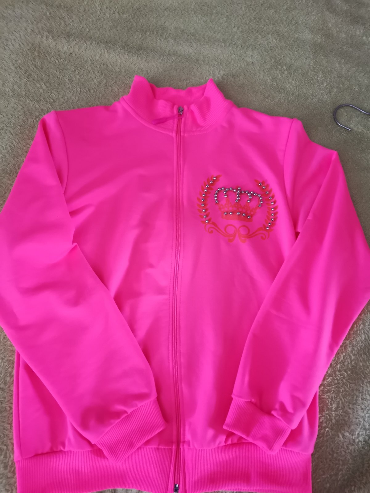Nenosená mikina, len oprana. Leola velkost S, na zips s krásnym motivom vyšívaná kráľovská koruna koralky.
