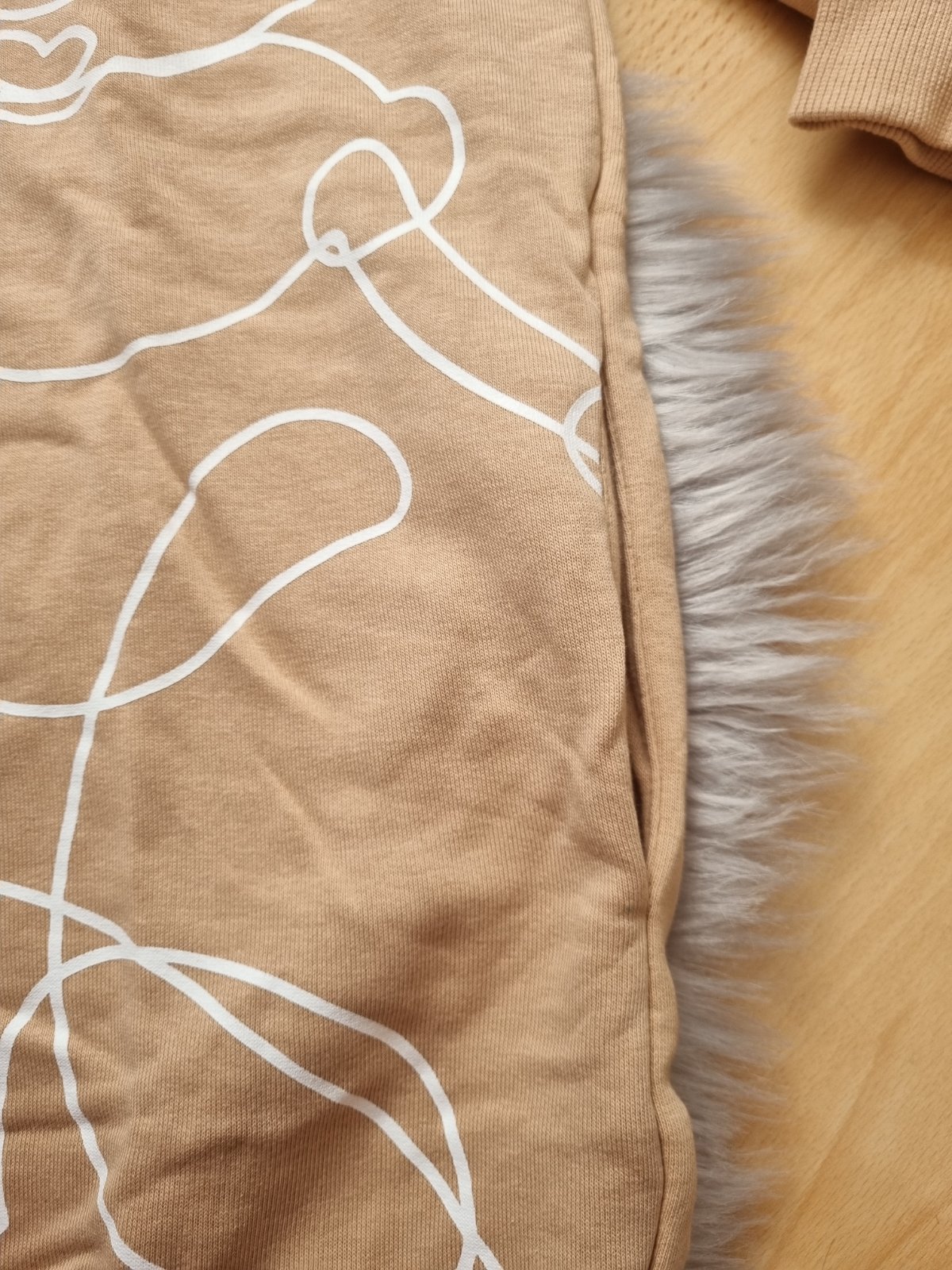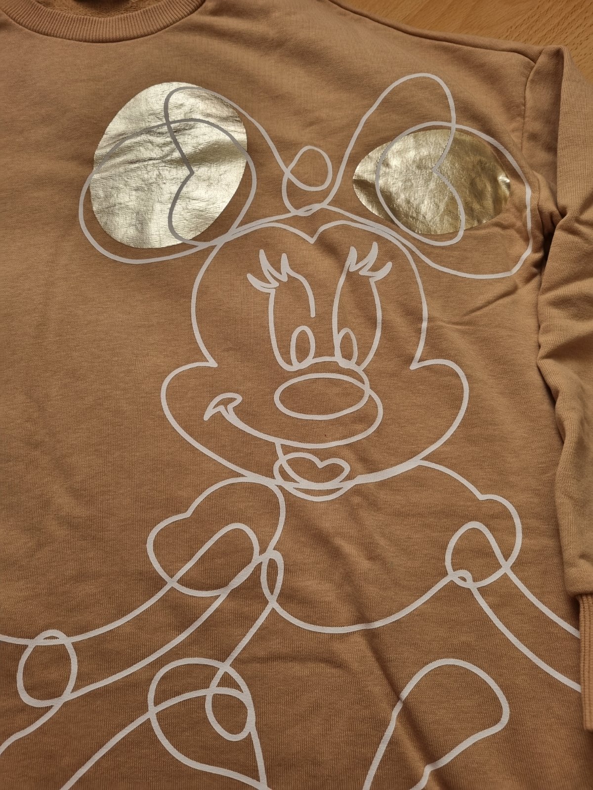 Mikina staroružovej farby, pekná jemná podtlač 3D, v dobrom stave bez poškodenia, rukáv voľný, široký nakonci stiahnutý gumičkou, dlžka rukáva 3/4