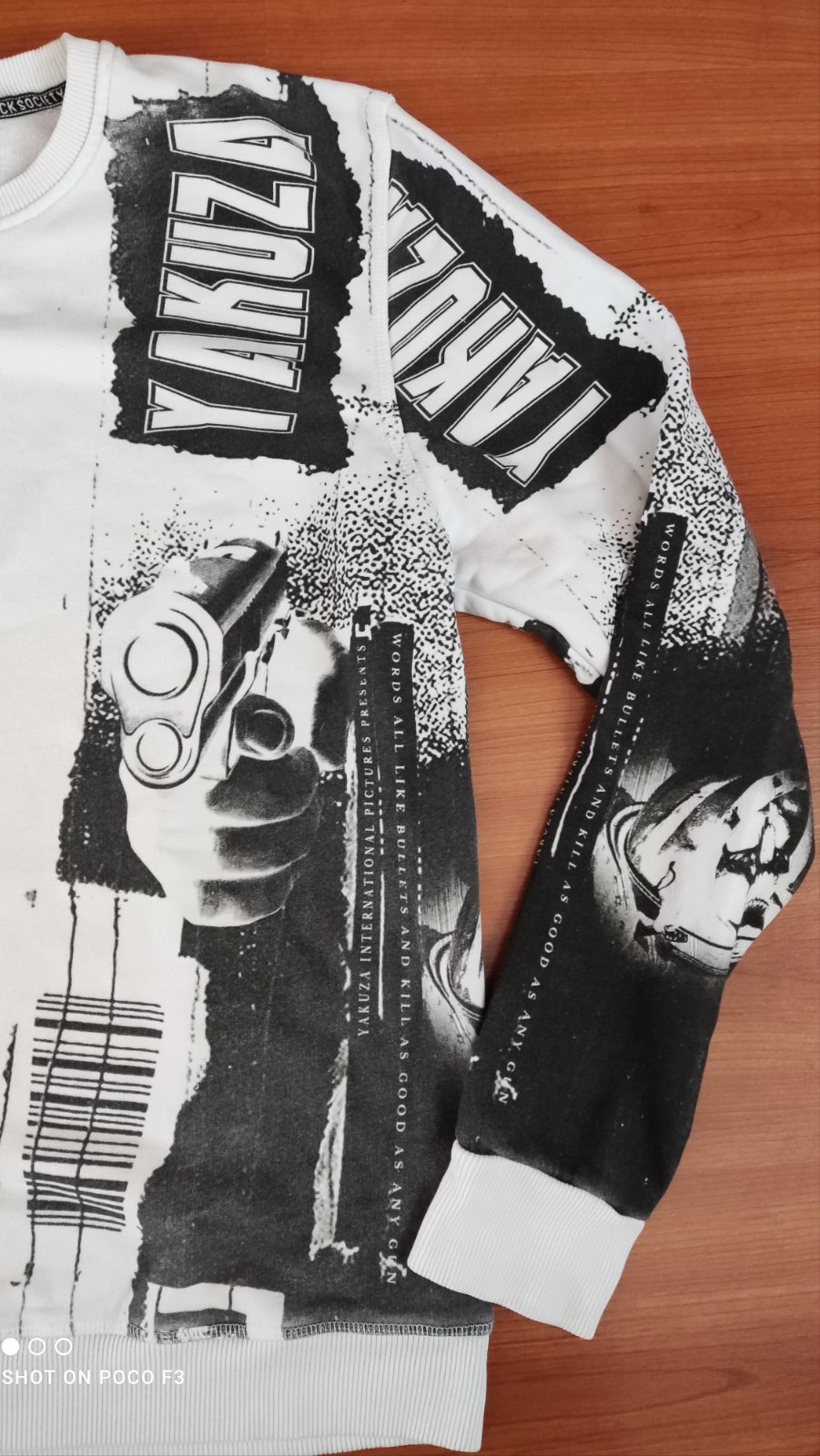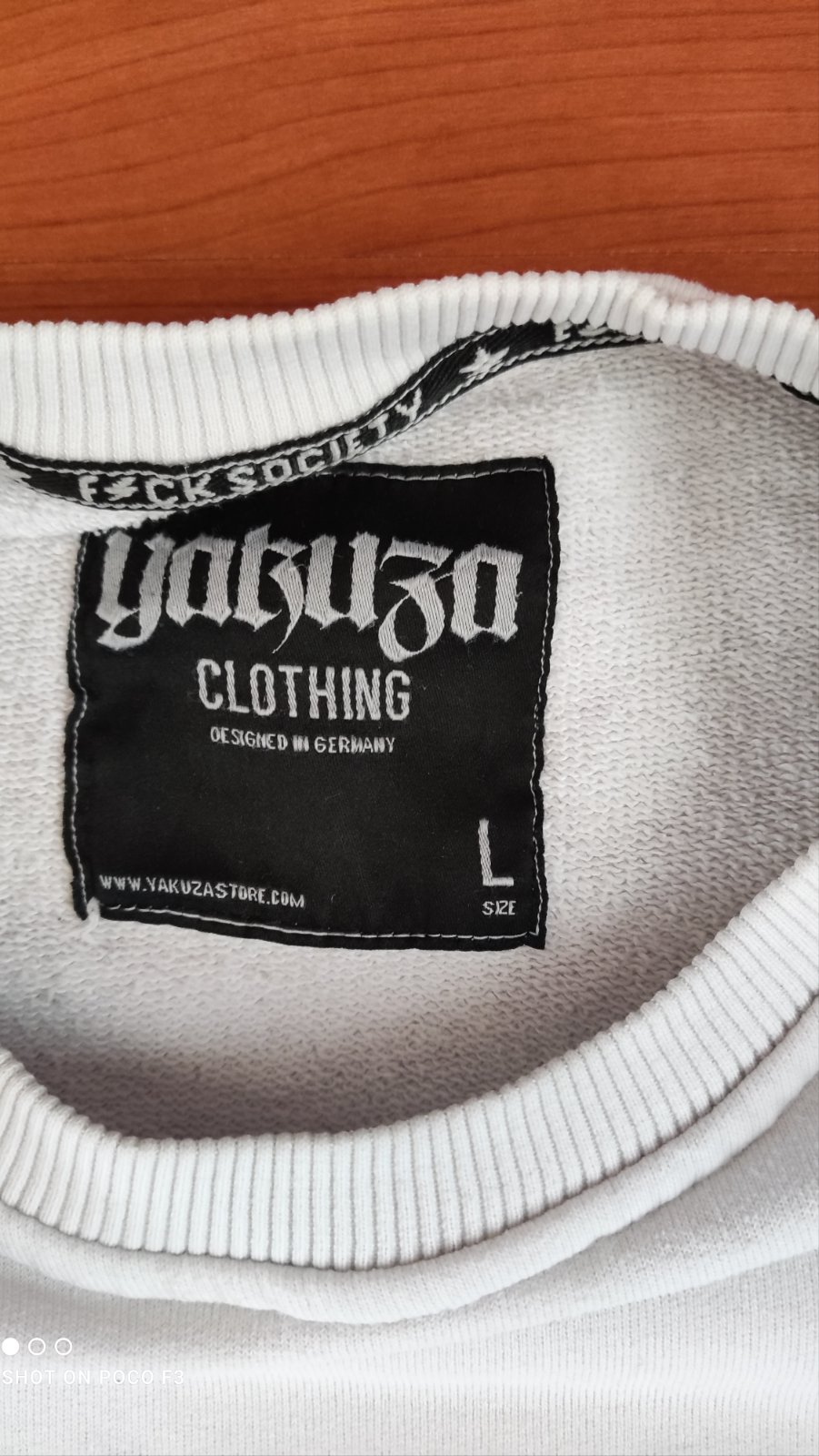 Biela mikina Yakuza, veľkosť L, nosená bez závad, tenšia.