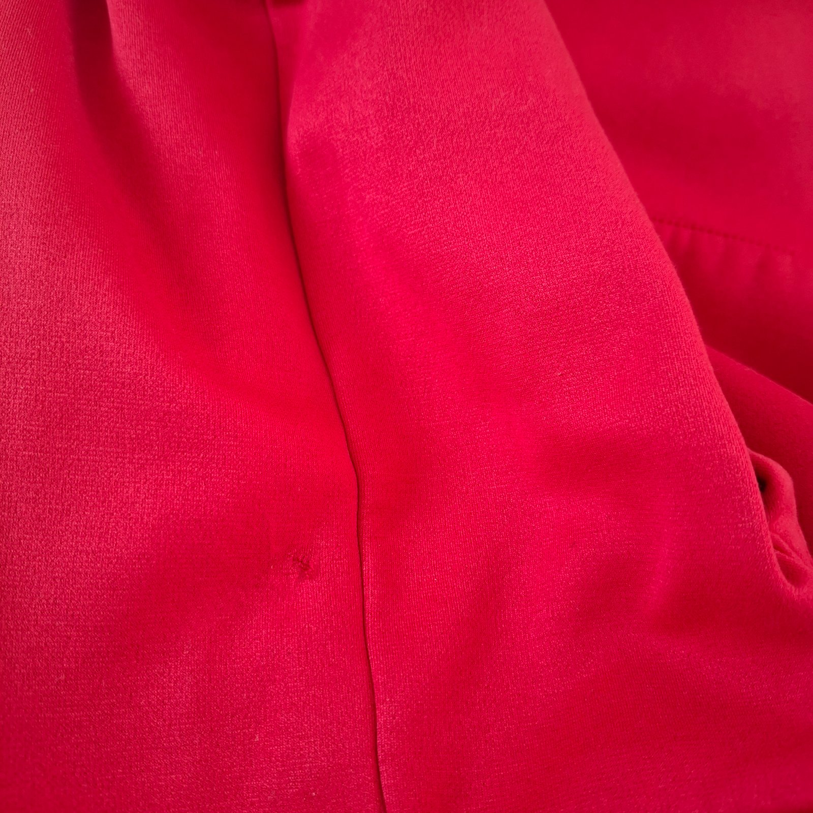 Mikina má na rukáve nášivky a na boku malé poškodenie vid foto