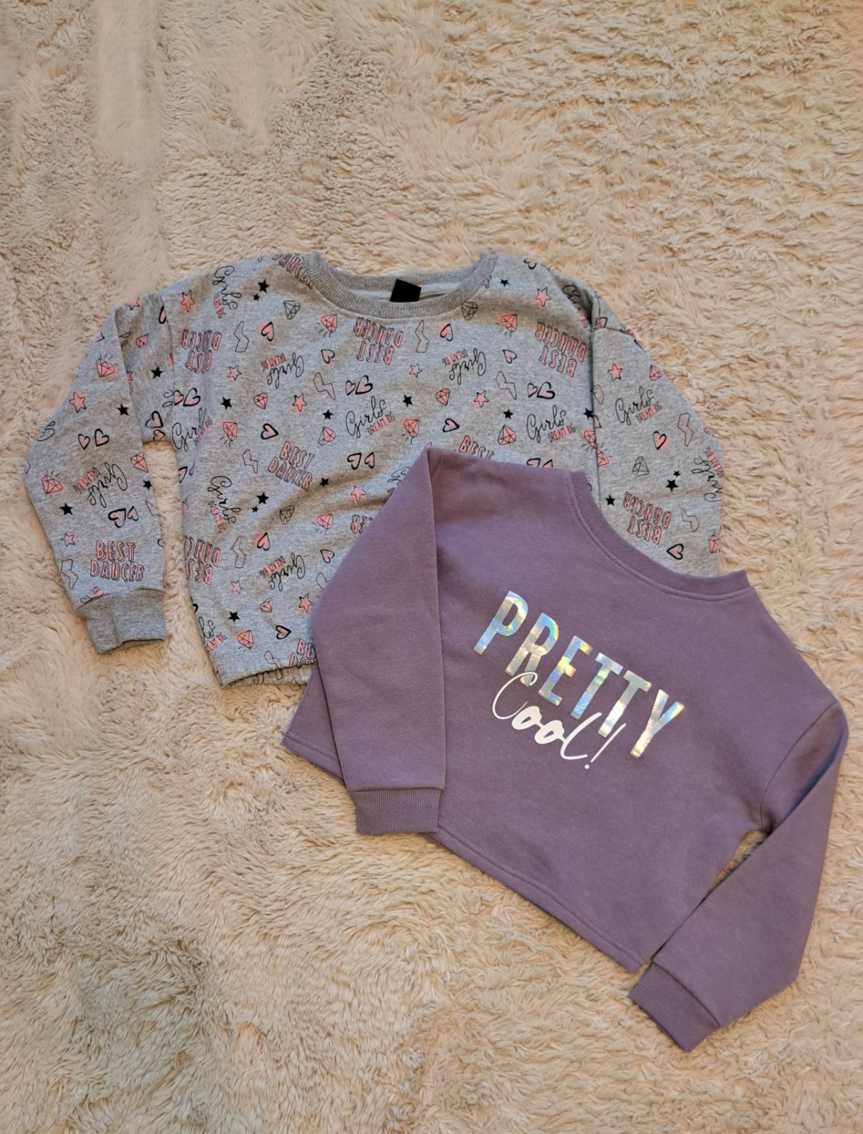 Benetton fialová mikina na zips, s kapucňou a dvoma bočnými vreckami, na rukáve dva vyblednuté fliačiky, neskúšala som už odstrániť, inak výborný stav. Veľ. 128