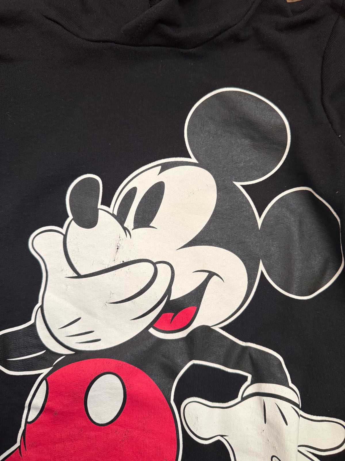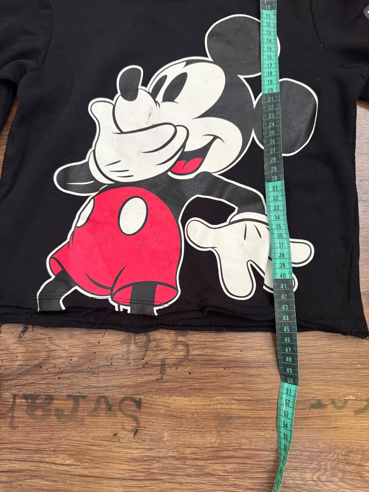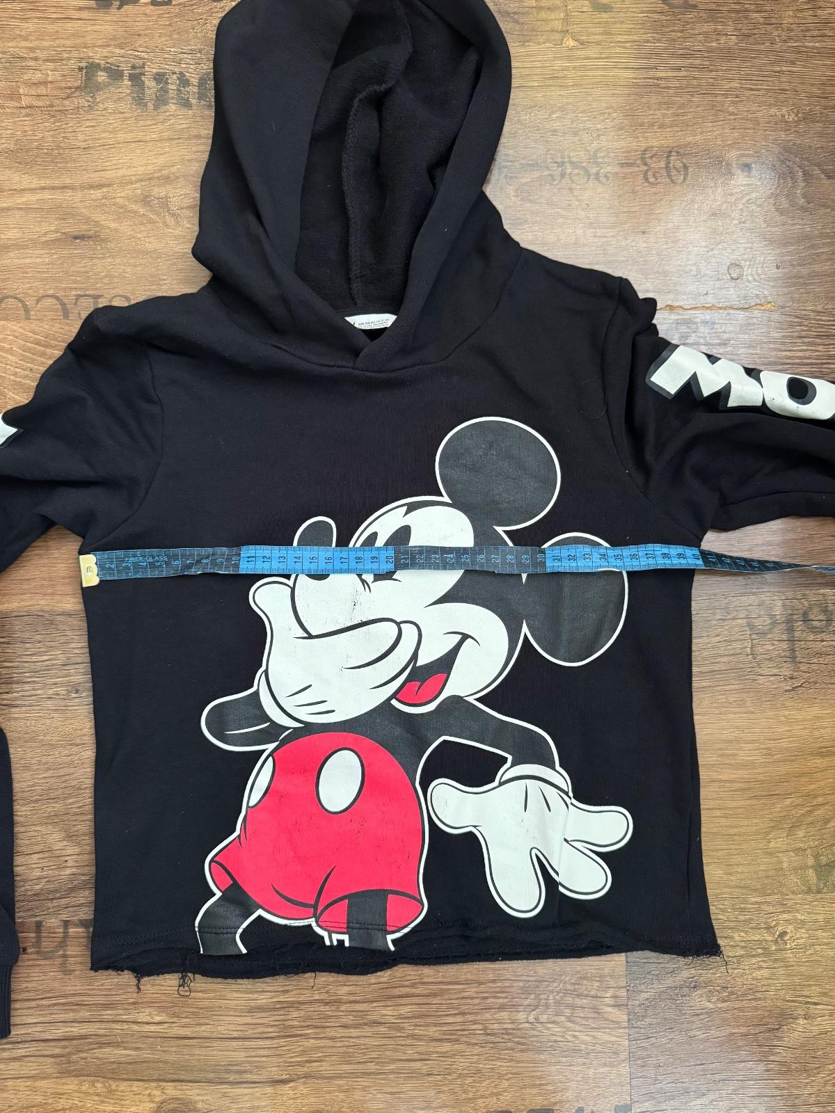 Ponúkam peknú cropnutejšiu mikinu Disney s motívom Mickey Mousa. Veľkosť je 158/164 na 12-14 rokov ale prikladám aj rozmery. Značka H&M Disney. Bol oblečený asi len raz, ale od kúpy potlač na niektorých miestach jemne vyšúchaná viď. foto, inak naďalej vo veľmi peknom stave. Poštovné podľa taríf.