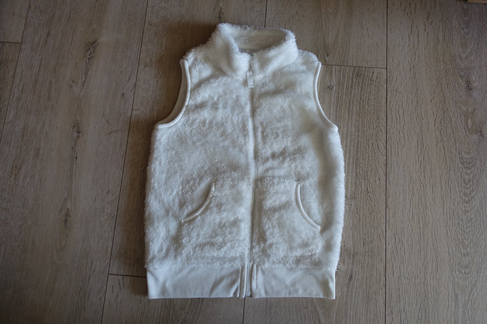 Predám krásnučkú, teplulinkú vestičku. Zips je plne funkčný, vpredu má 2 vrecká. Mali sme ju iba pár krát, ale je vo veľmi peknom stave. Celková dĺžka od pliecka po spodok je 48 cm a šírka 37 cm. Predávam aj túto istú vestičku o číselko väčšiu, viď môj bazárik. Odporúčam. (G)