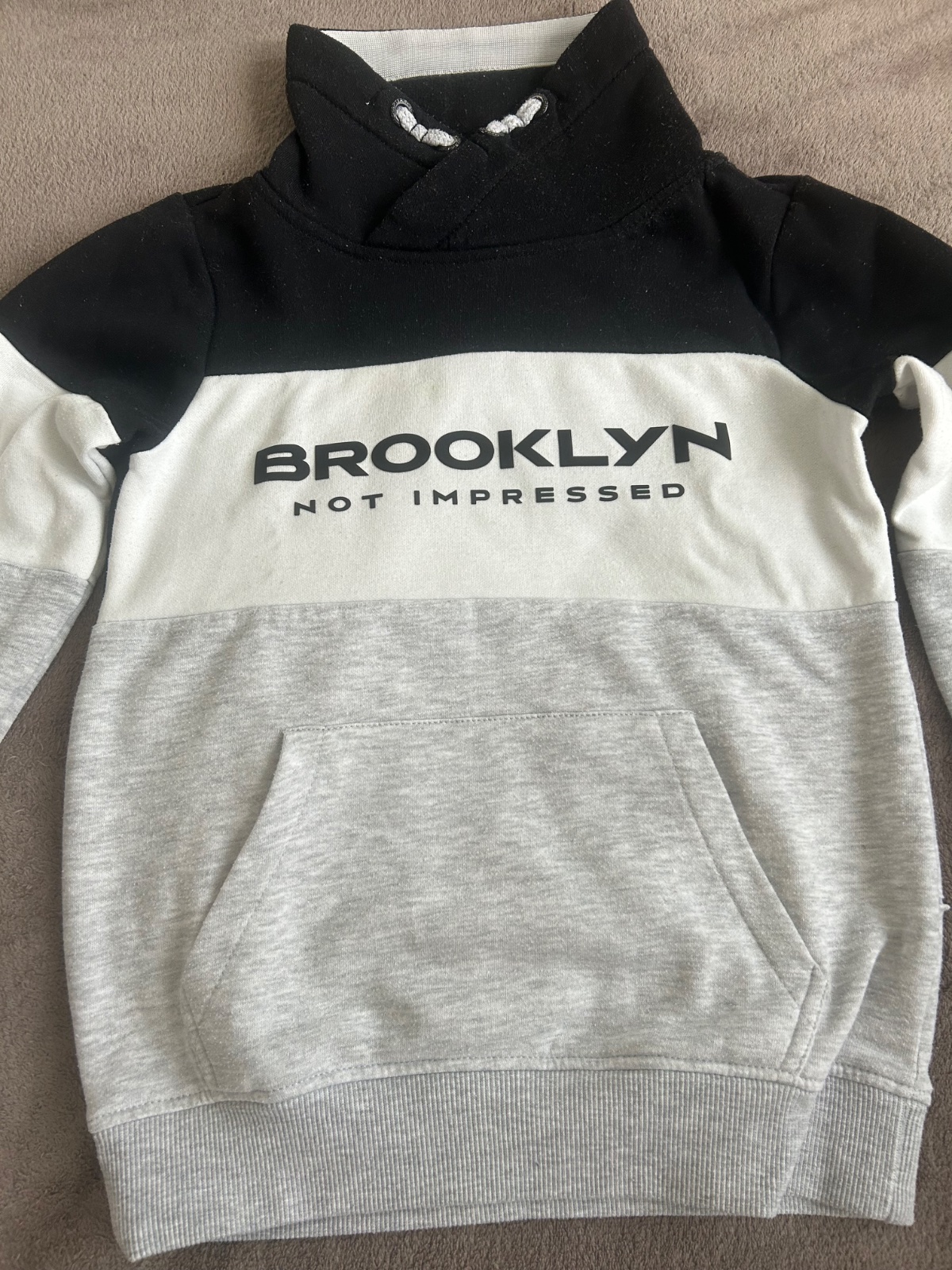 Mikina s väčším golierom, na zadnej strane na kraji je dierka