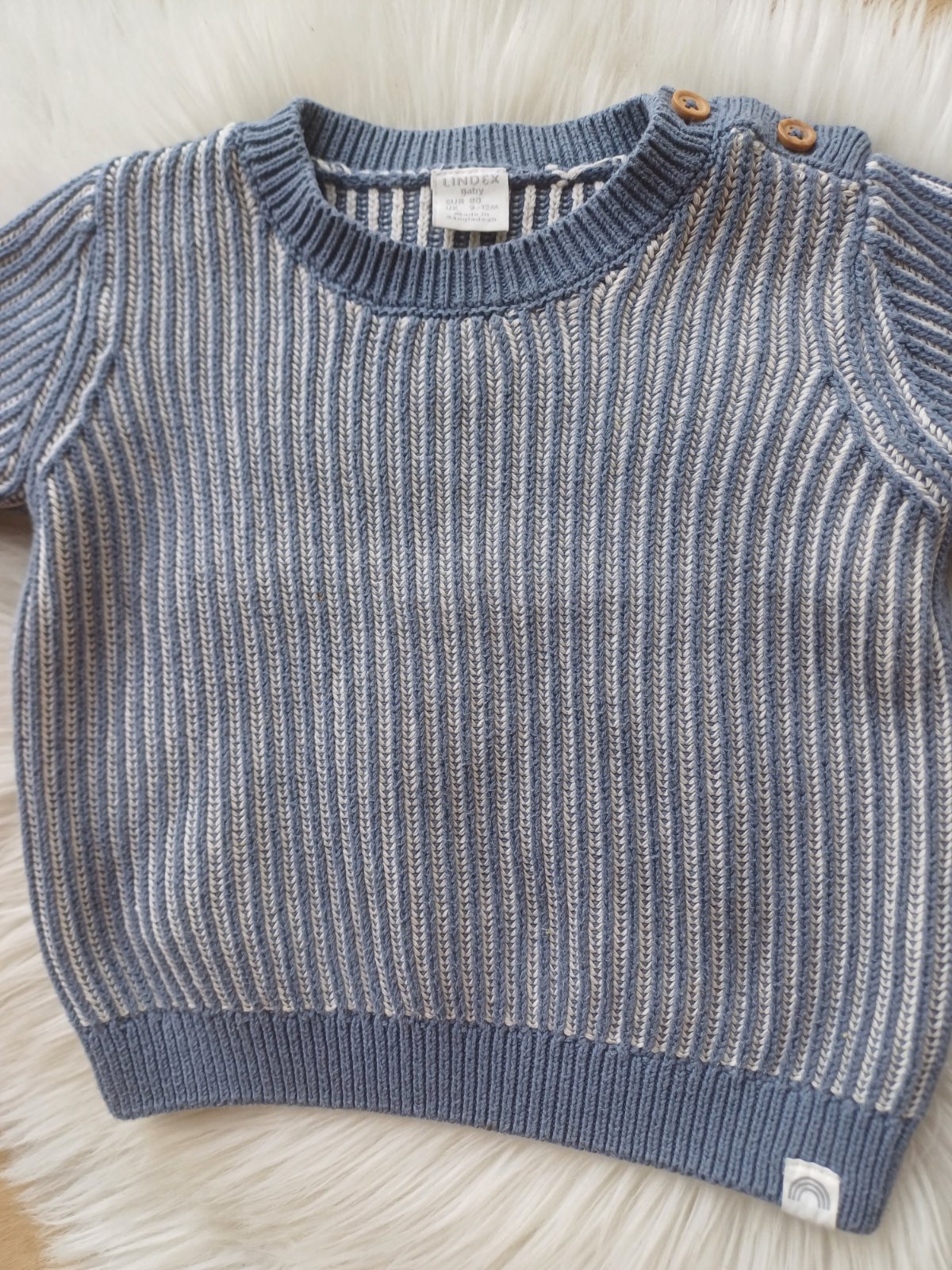 Krásny svetrik pre malého fešáka v top stave. Veľkostne sedí. Nemeriam.