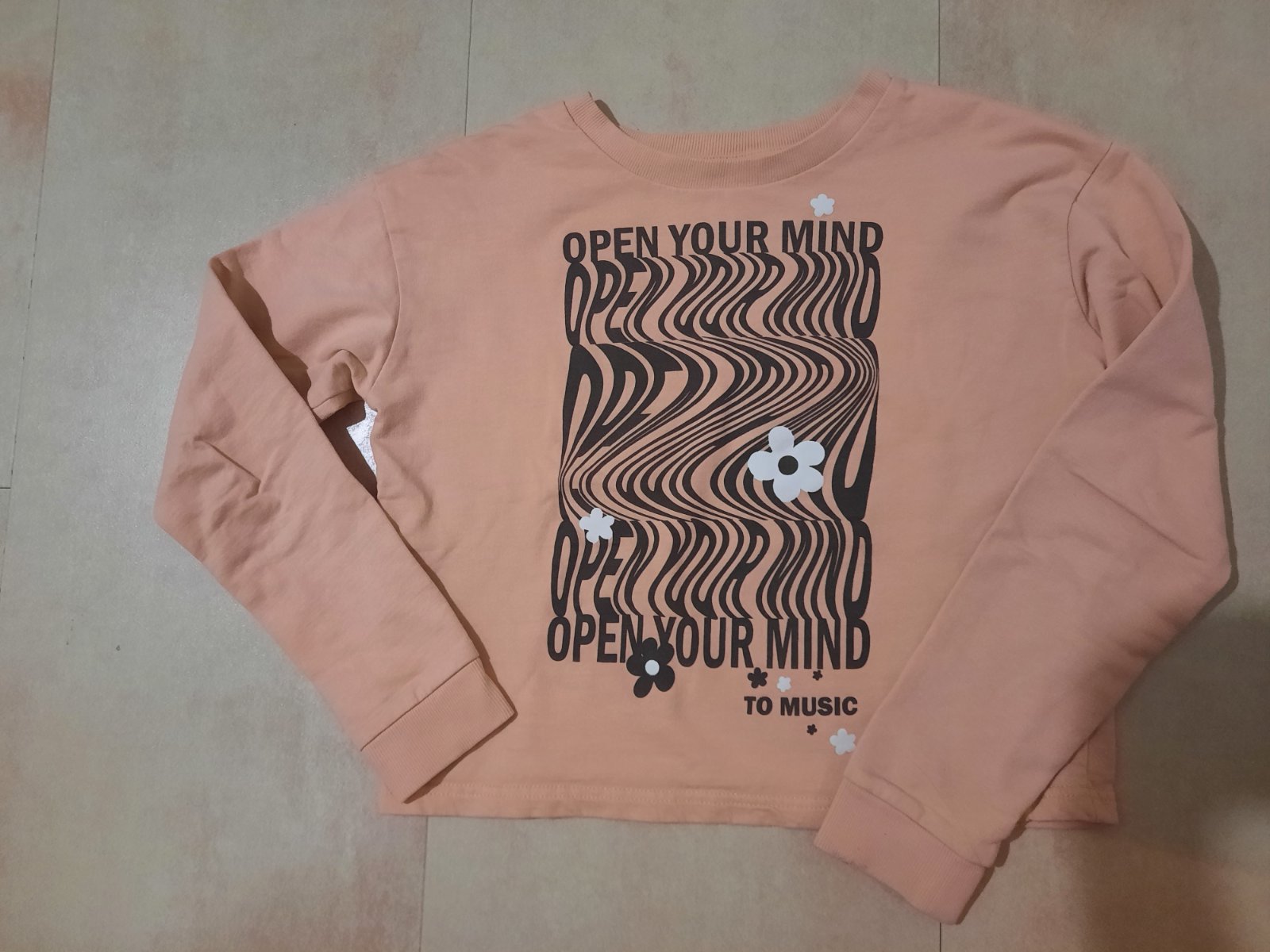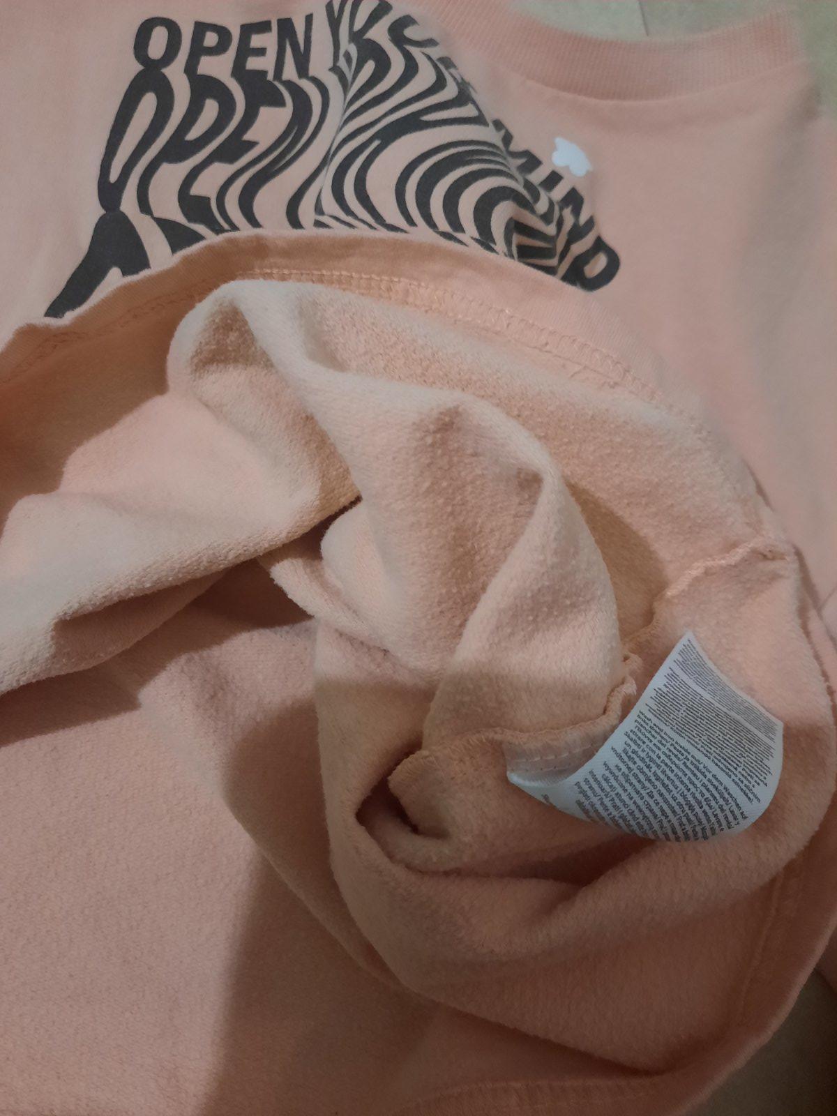 Veľmi pekná bavlnená tenšia cropnutá mikina vo výbornom stave. Jemná marhuľová farba.