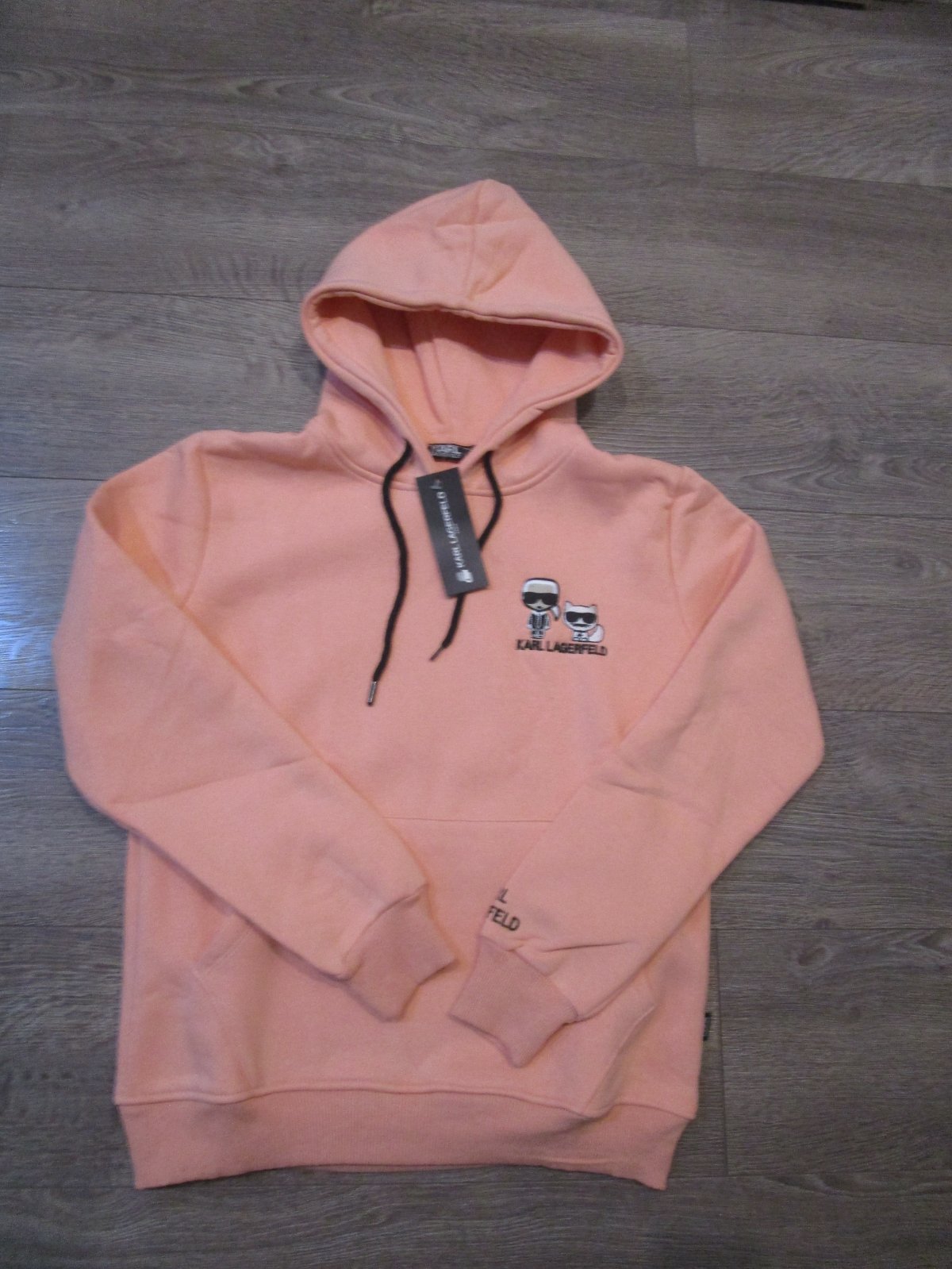 Teplá mikina,udana vel.L,ale zodpoveda vel.M, vpredu s vreckami,na jednom trojuholníku pri vrecku je osuchana ta koženka,/viď foto/,farba taka tmavo lososová...