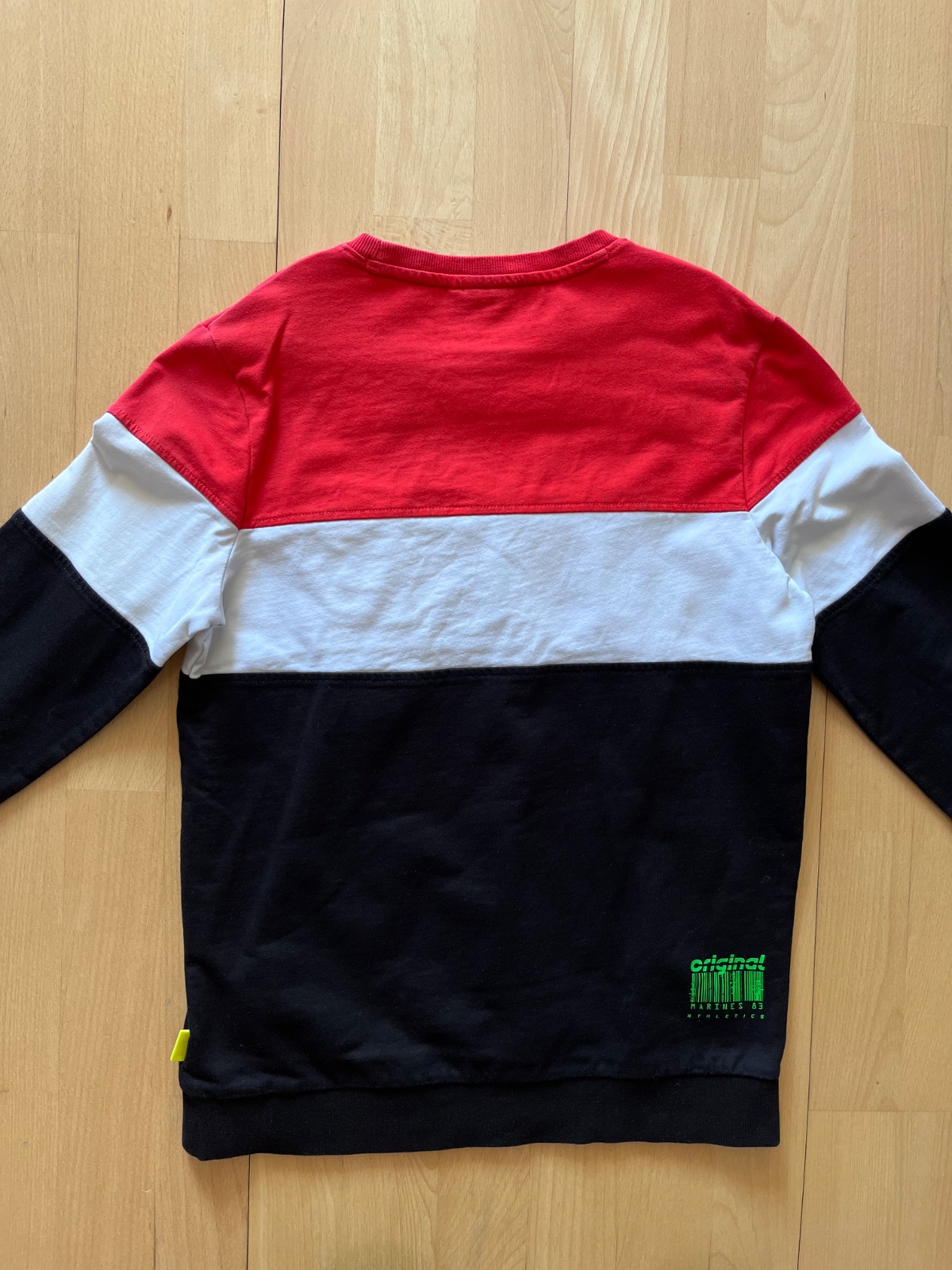 Predam bavlnenu mikinu - ideálnu ako jarny pulovrik pre skolaka, velkost 13/14 (zodpoveda skor 13), znacka Original Marines, 2x oblecena, super stav, bez flakov alebo dierok. Zadna dlzka od krku 62 cm, sirka pod pazuchami 47 cm, dlzka rukava od krku 68 cm (z toho plecnica 11 cm). BA - Ruzinov.