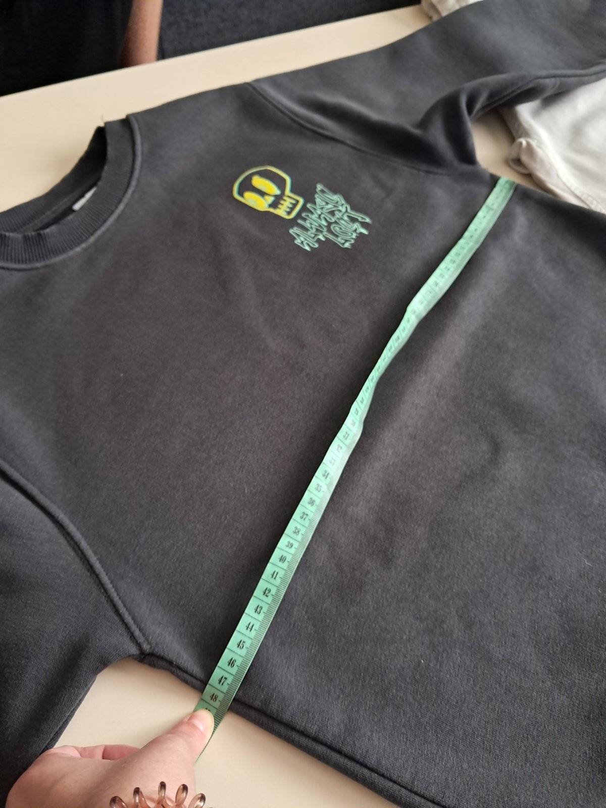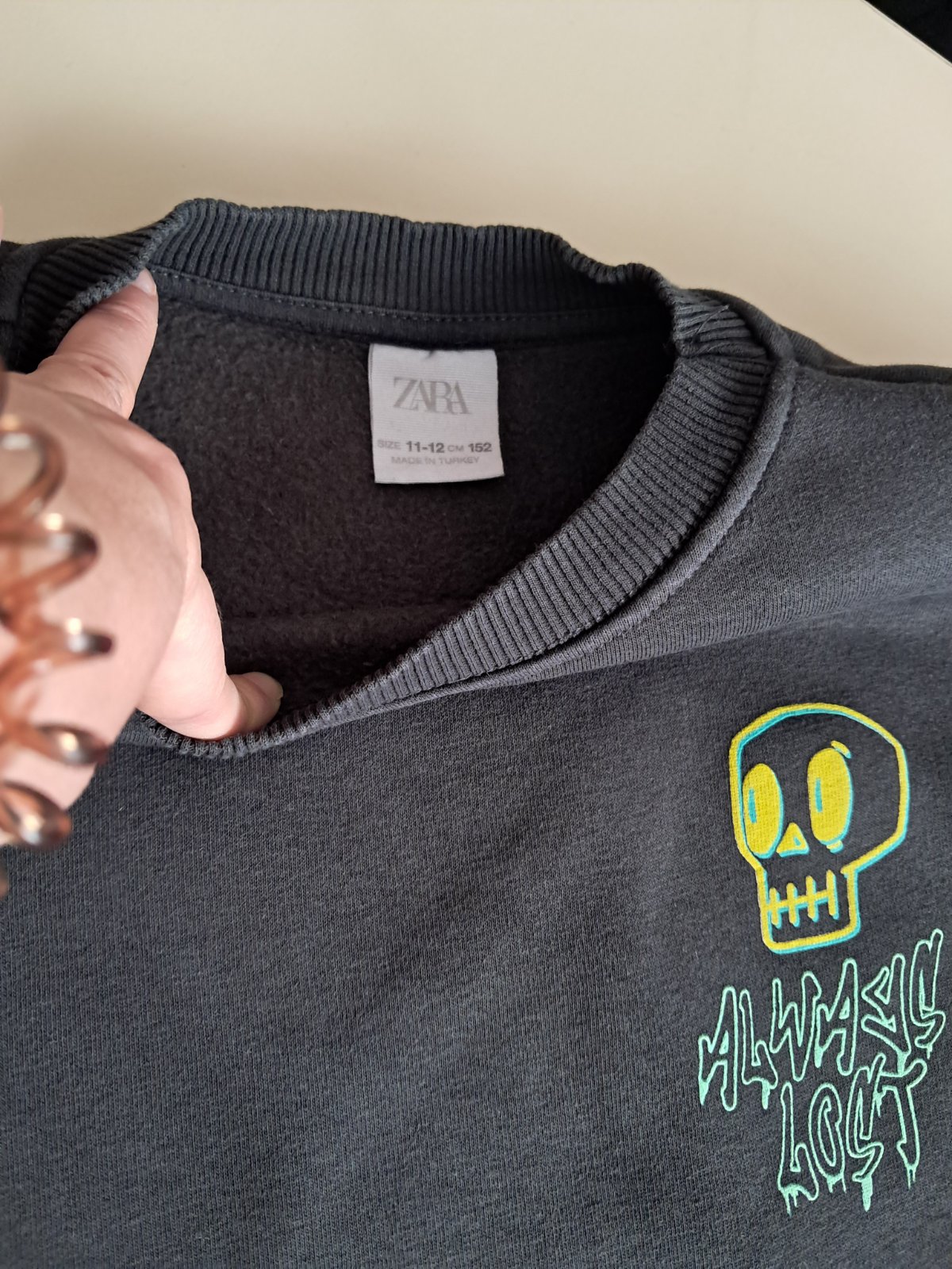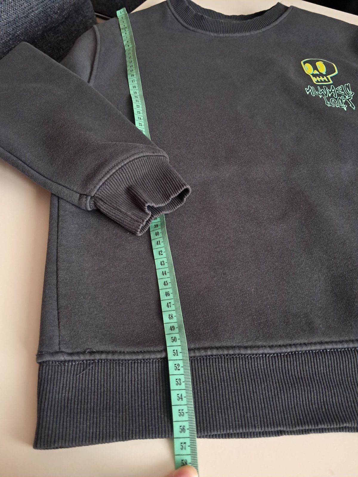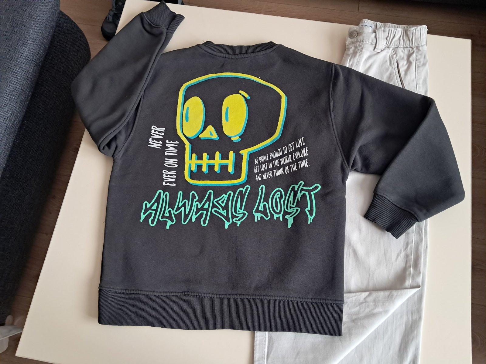 Super mikina teplucka tmavoseda s potlačou lebky. Bez poškodení. Rozmery pofotene. Velkost 11-12r. Sedi na 11rokov podľa mna.