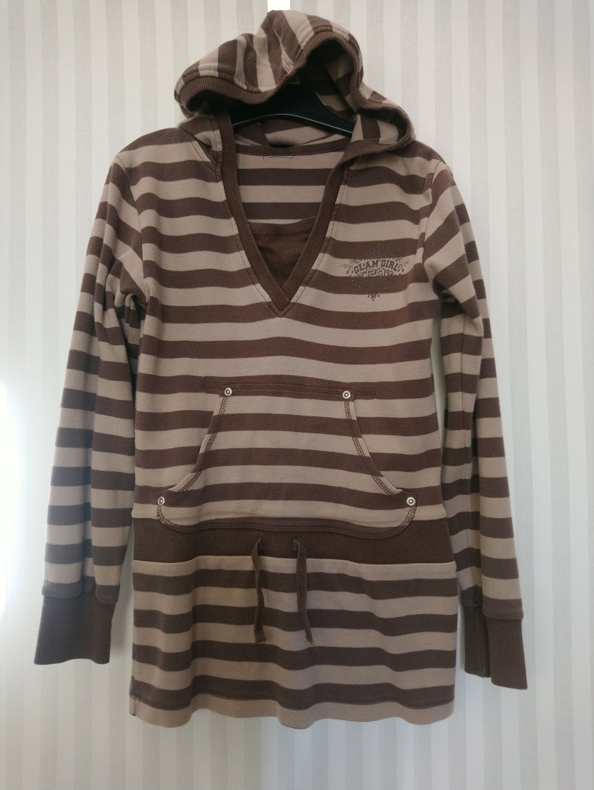 Pásikavá hnedá mikina klokanka, Glam girl, 146-152