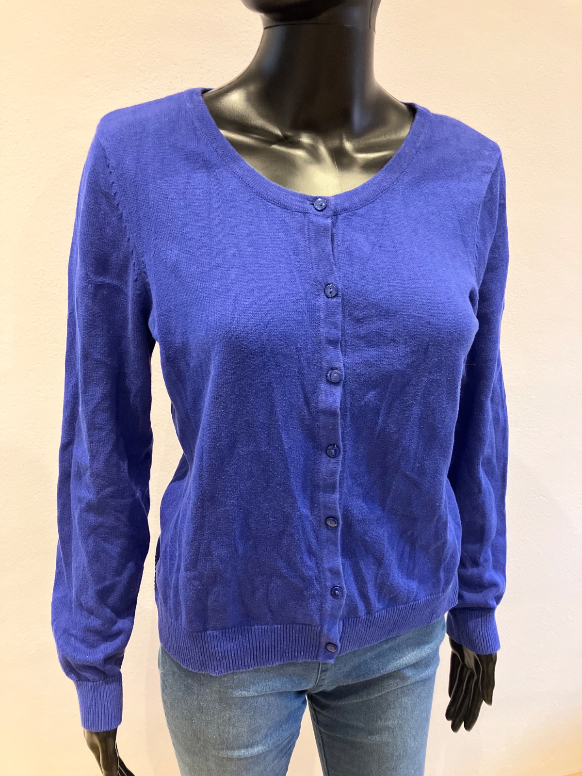Dámsky fialovo modrý sveter, zapínanie na gombíky, tenký, elastický, materiál 100%bavlna.