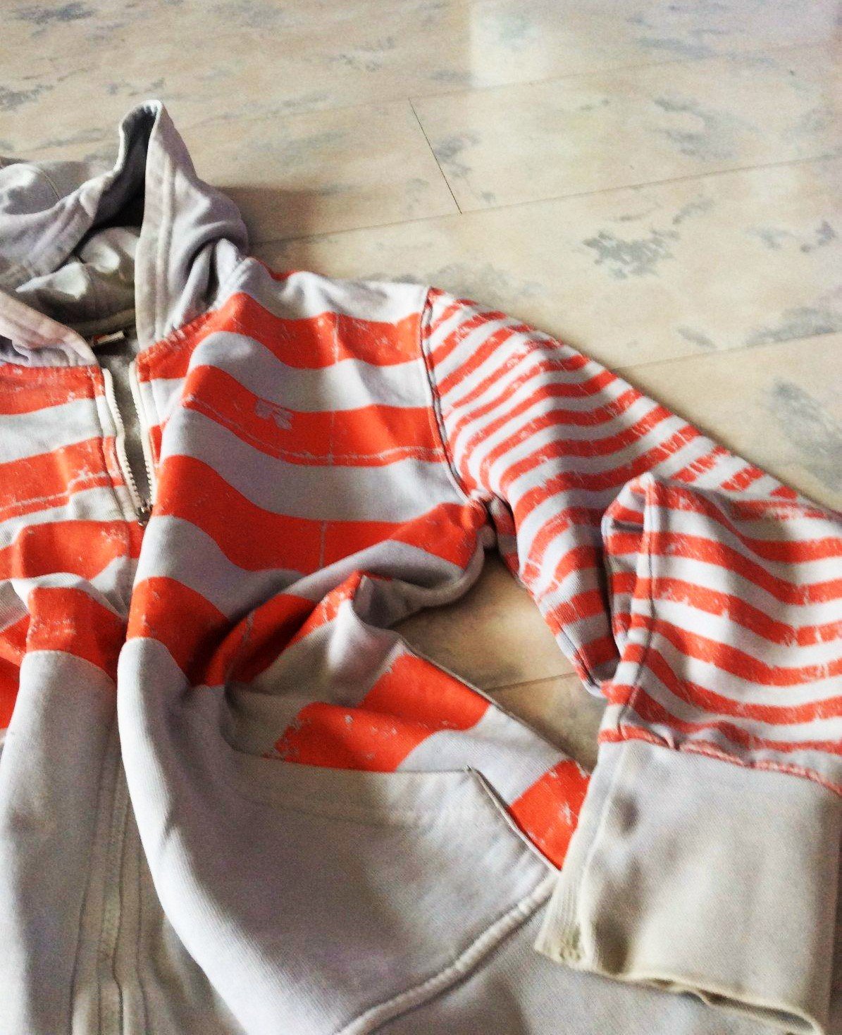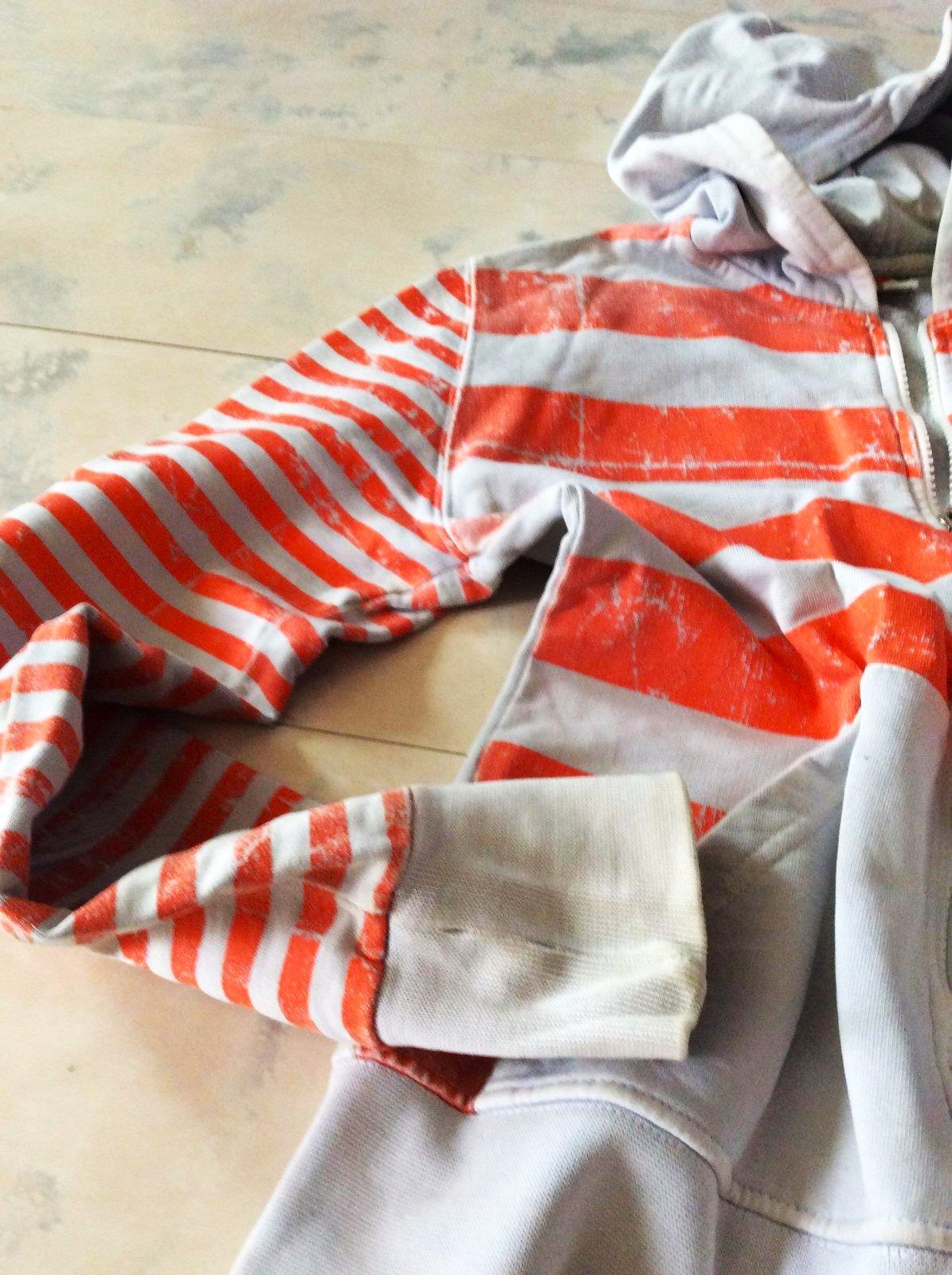 nosená ale veľmi zachovala vintage mikina, velmi kvalitný materiál, žial na rukáve na rumbe je dierka ( viď foto ) ,ale dá sa pekne zašiť, v každom prípade nositeľná,ja som ju nezašila ( dá sa prichytiť k rúbiku kde je to zošité ) aby ju bolo zreteľne vidieť...( posl. 2 obrázky )