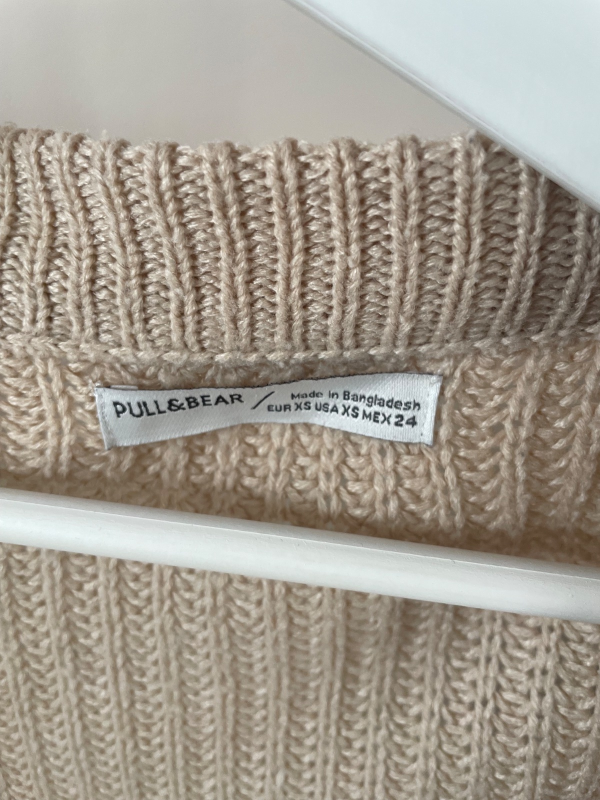 Pekný pulóver z príjemného materiálu zn. Pull&Bear, top stav, veľkosť xs, rozmery: dĺžka 39 cm, šírka 51cm.