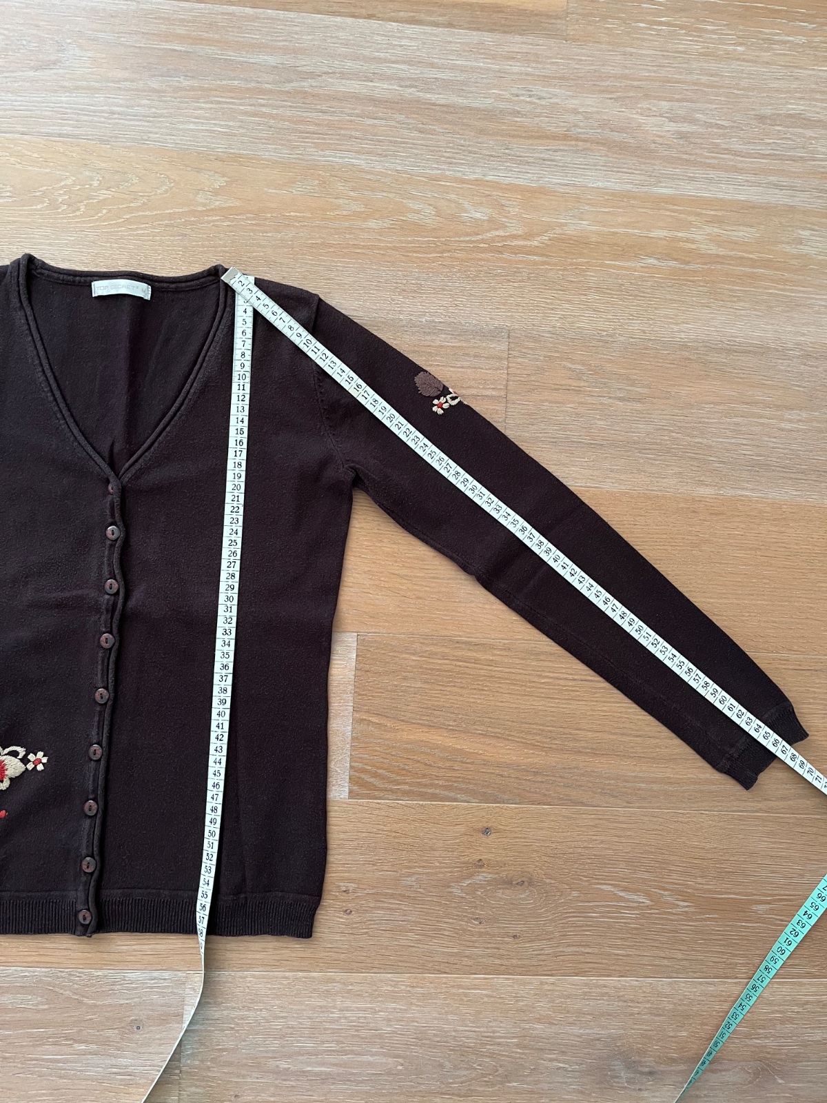 Predám hnedý svetrík s gombíkmi. Veľkosť nie je udaná, no vyzerá na M/L. Dĺžka 62 cm, šírka 37 cm. Zloženie: 70 % akryl, 30 % ľan.V prípade záujmu ešte premeriam! Budem rada, keď niekomu poslúži:...
