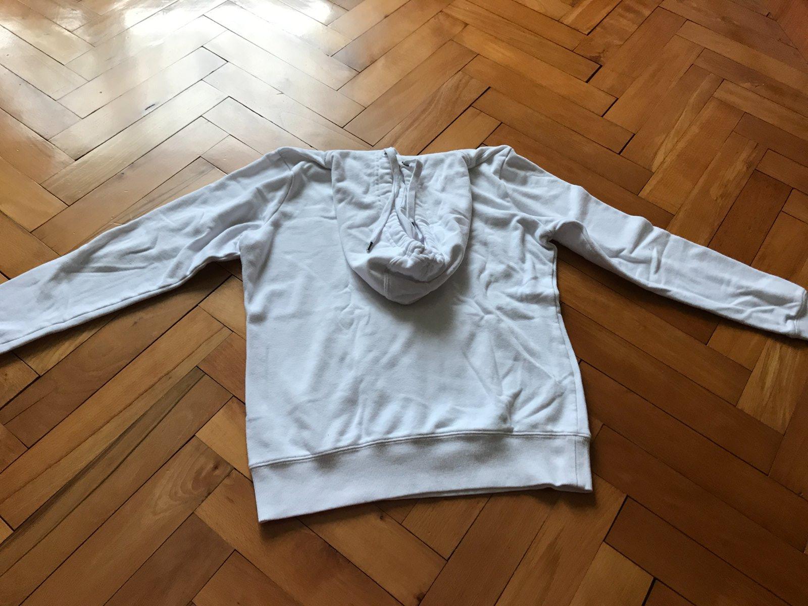 biele mikiny s kapucňou a klokankovým vreckom