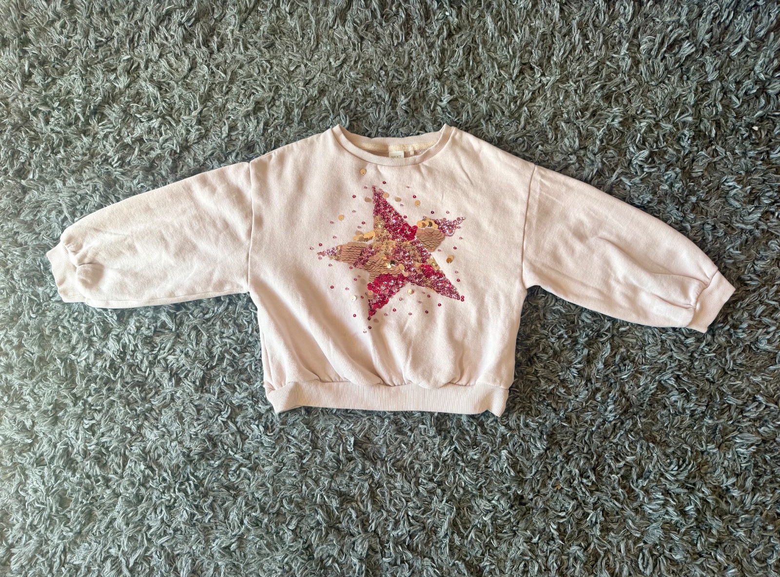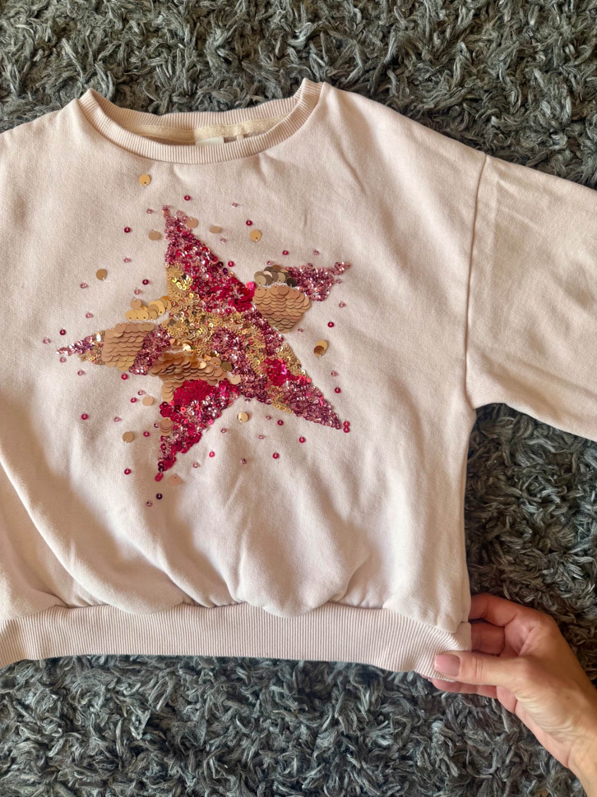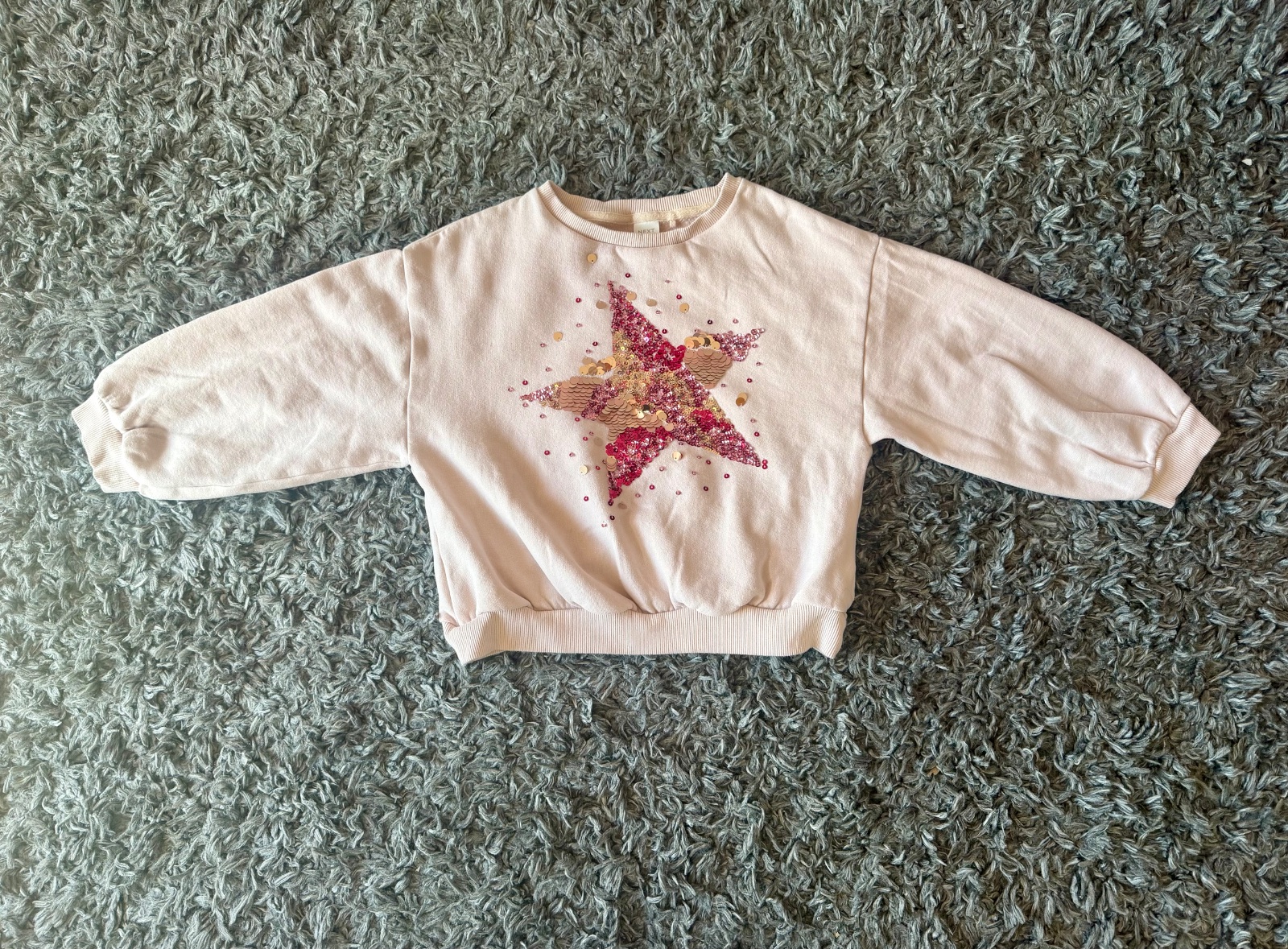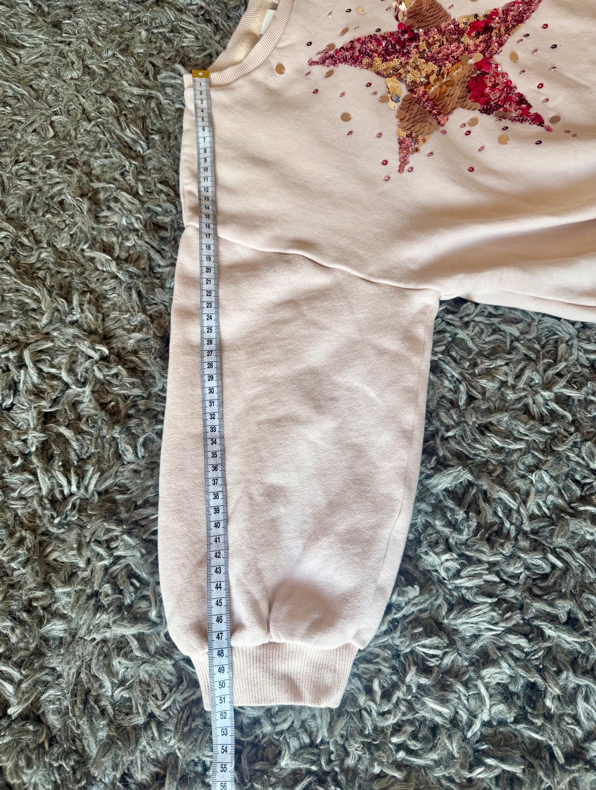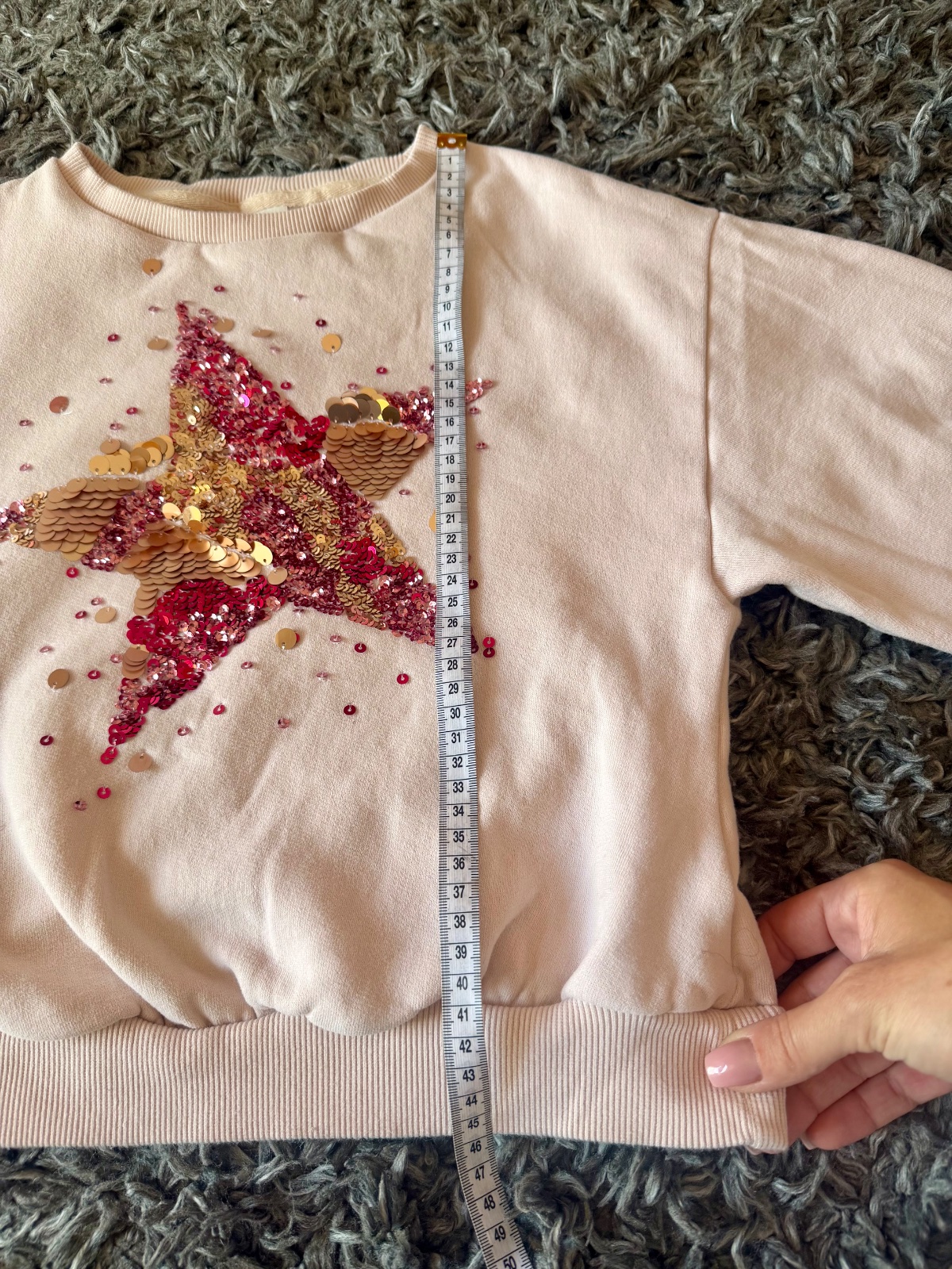 Veľkost pisana na mikinke je 140, za mňa skor 128/134, aby v nej dieta nevyzeralo ako vyrastenec. Krasny stav, bez poskodeni.