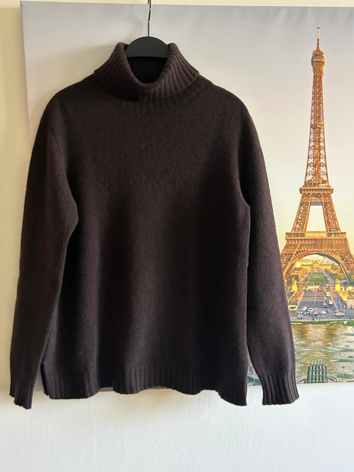 Predám tmavohnedý rolák zo 100% kašmíru značky ASSUILI. Táto značka sa špecializuje na kvalitné výrobky z kašmíru a vlny. Veľkosť L, rozmery: hrudník 50x2 cm, rukáv 57 cm, dĺžka 62 cm. Krátke bočné rázporky a patentné zakončenie rukávov aj dĺžky roláku, čím pekne drží tvar. Pôvodná cena bola oveľa vyššia. BA alebo poštou+poštovné.