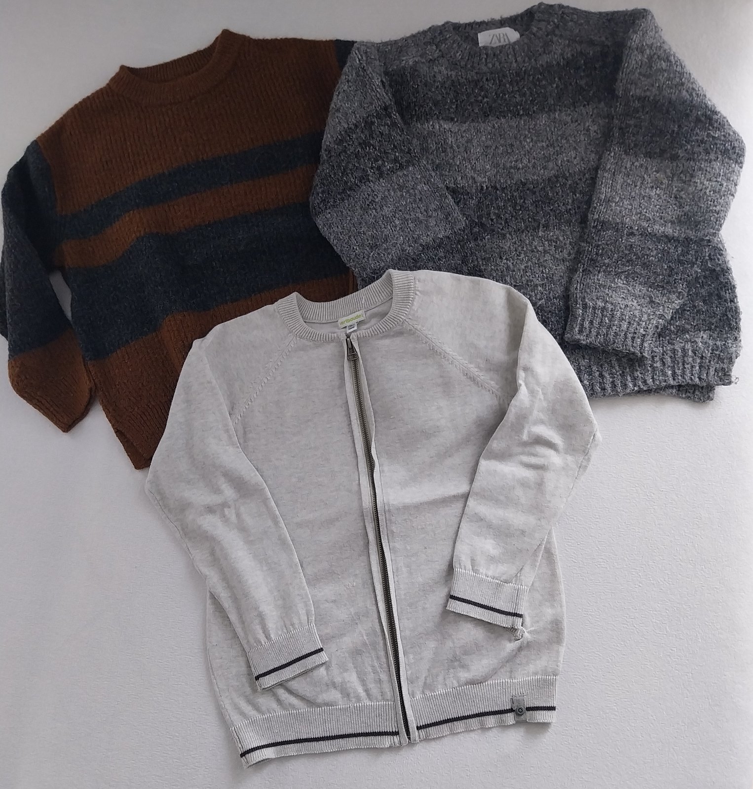 Predam super teple pulovre pre chlapca vo velmi peknom stave. Bledomodry Benetton; tmavomdry, sedy, hnedy- Zara, kremovy na zips je vertbaudet.