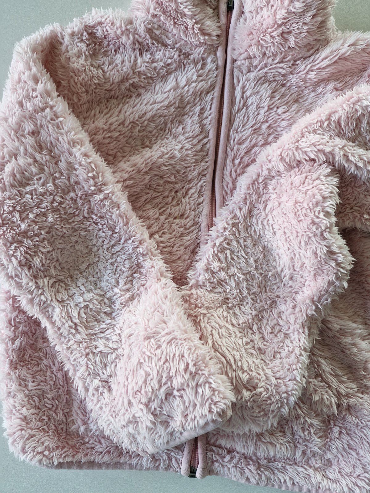 mikinka pre dievčatko, veľkosť 110-116, HM, bledoružovej farby, kapucňa podšitá, vpredu nášivka, klokanie vrecko, na vrecku je malý fliačik oranžový asi z fixy, aj na rukáve, nejde to vyprať, bez...