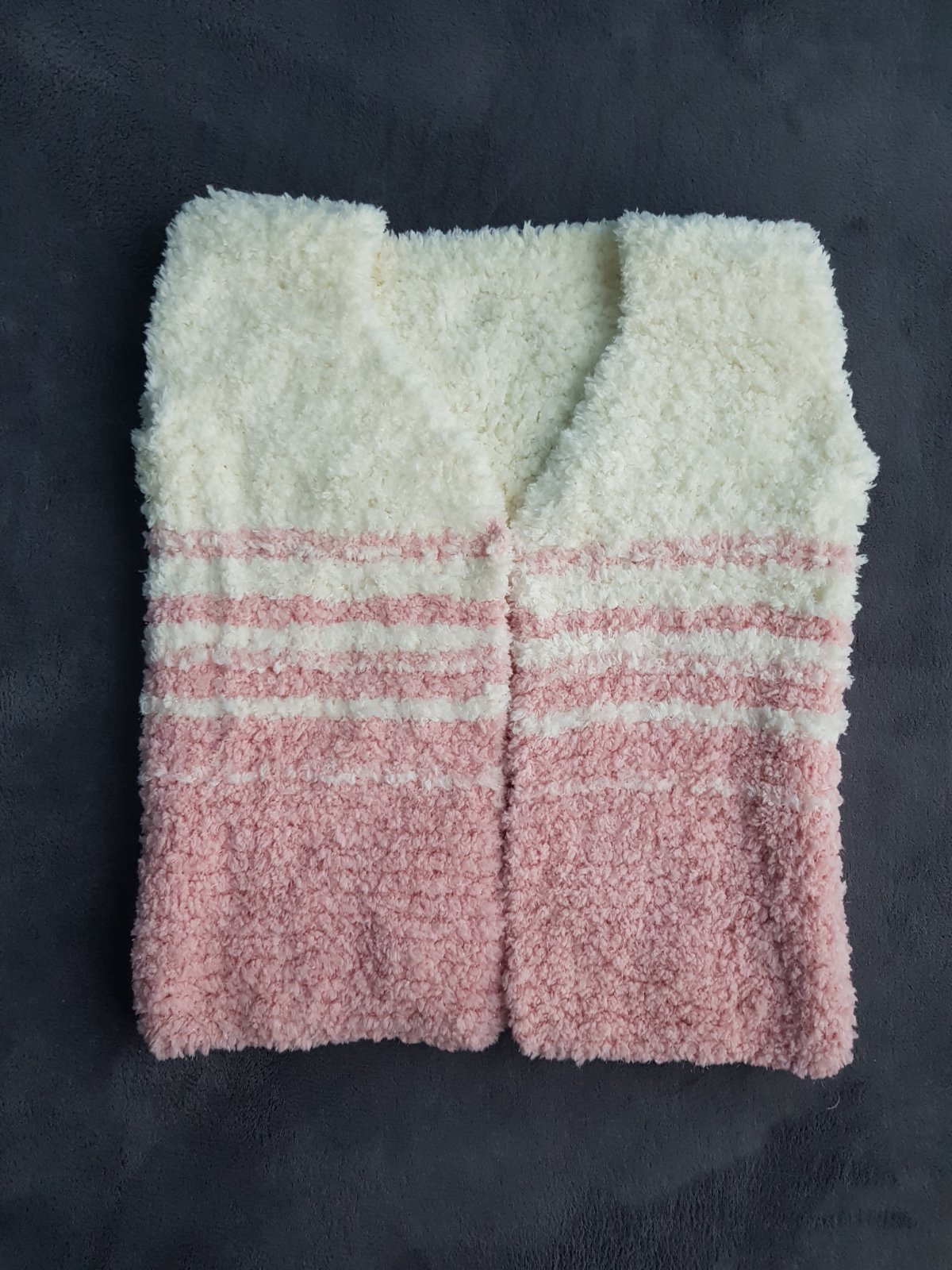 Predám vlastnoručne uštrikovanú vestu - nikdy nenosenú. Mäkučký materiál, bez zapínania. Zapínanie si môžete dotvoriť podľa vlastnej ľubovôle, ja som plánovala zapínanie na háčiky, ale kým sme ich zohnali, dcéra z nej vyrástla, a preto je nenosená.