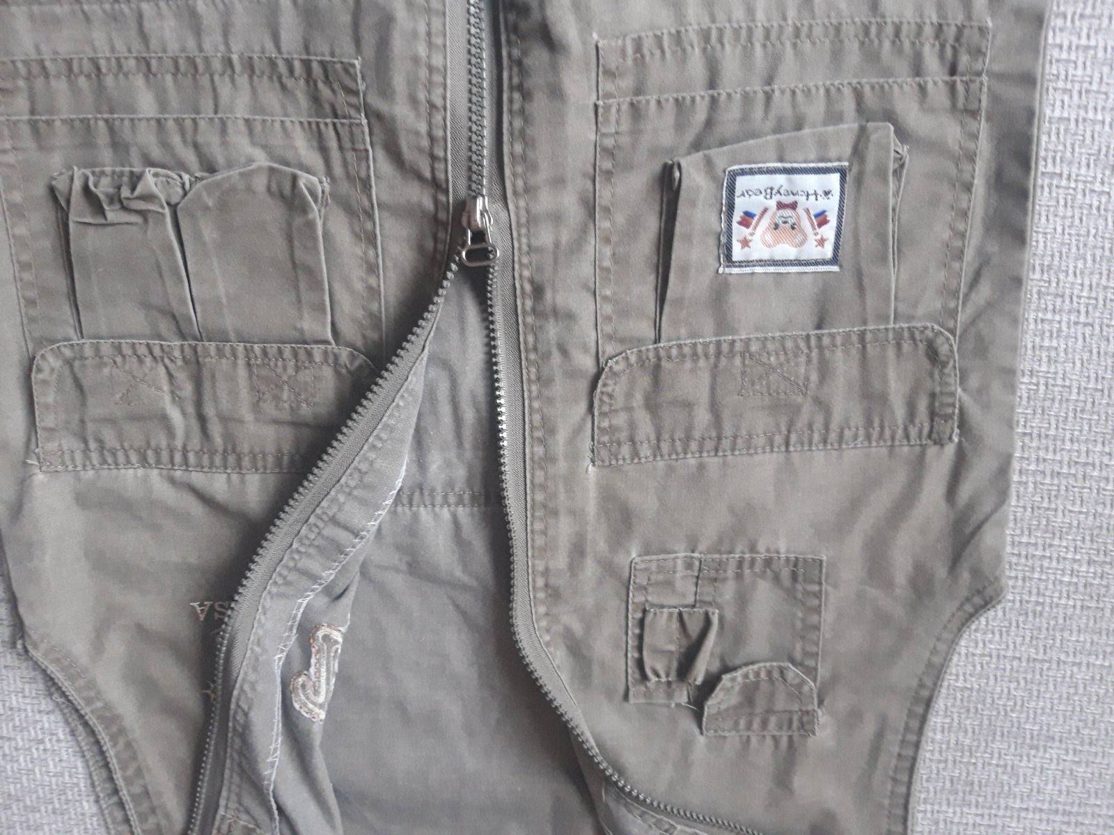Málo nosená vesta,pekná,tenká,na pravom vrecku nelepí suchý zips,veĺkosť písaná 12
