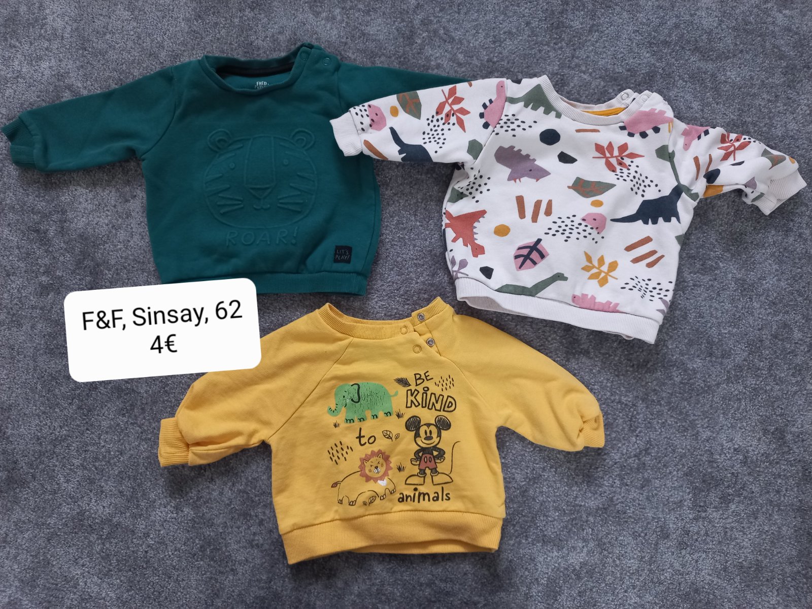 3 nosene tensie mikink, horne 2 znacka Fred&Flo, spodna Sinsay, vsetky velkost 62. Bez poskodenia, farby uz z prania nie su take syte.