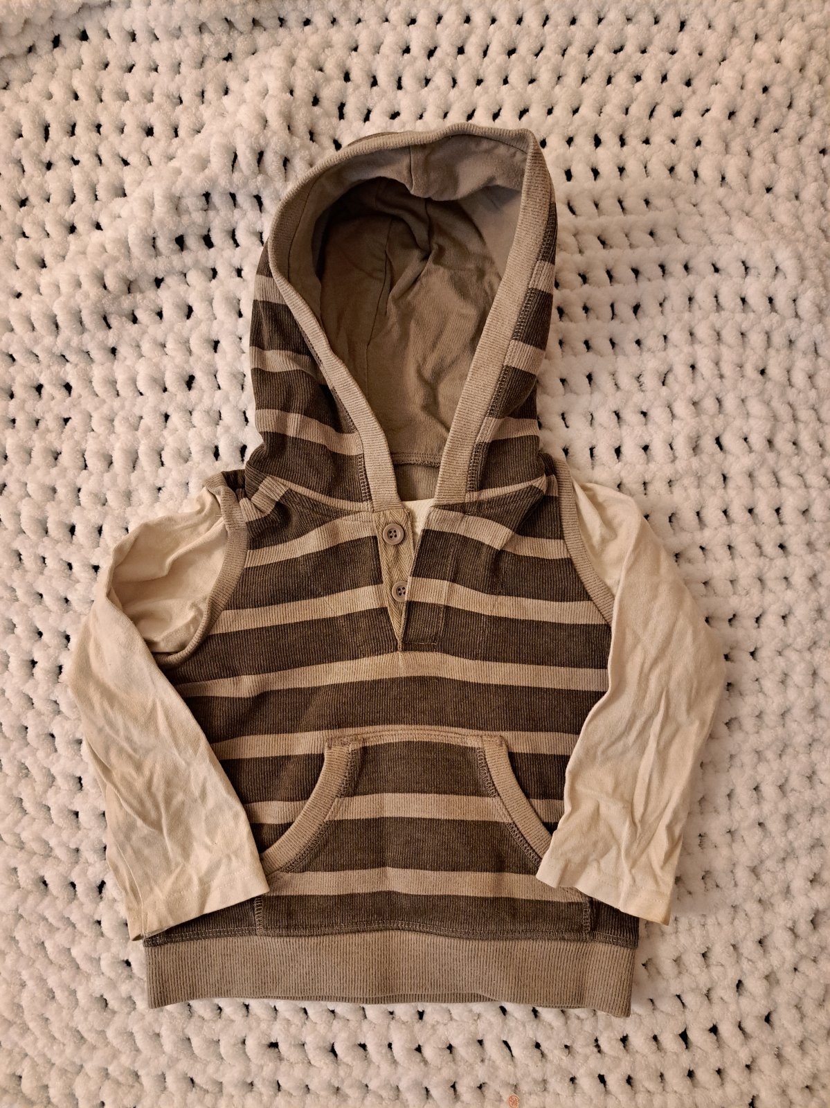 V dobrom nosenom stave. Hrúbka strednej časti ako mikina a rukávy sú tričko.