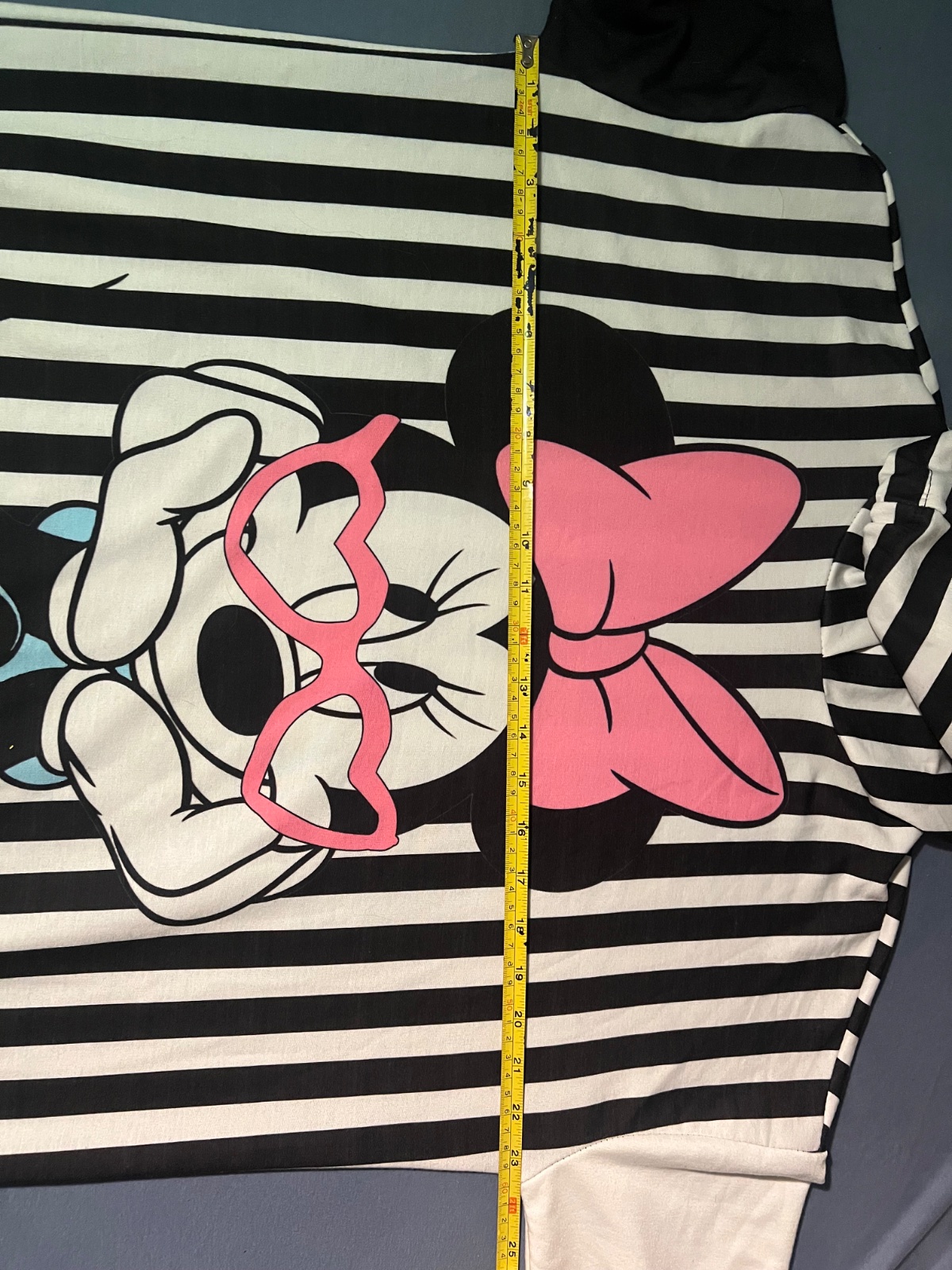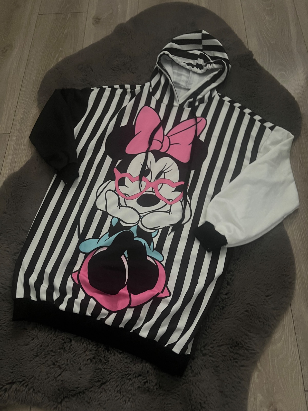 Raz oblečená, po tehotenstve ju už neobleciem 😞 je krajšia oveľa ako na fotke, motív džinsoviny tmavej s bledou, vnútri biely flis.sirka popod pazuchy je 54cm, dĺžka 67cm. Zlozenie 80%bavlna a 20 ...