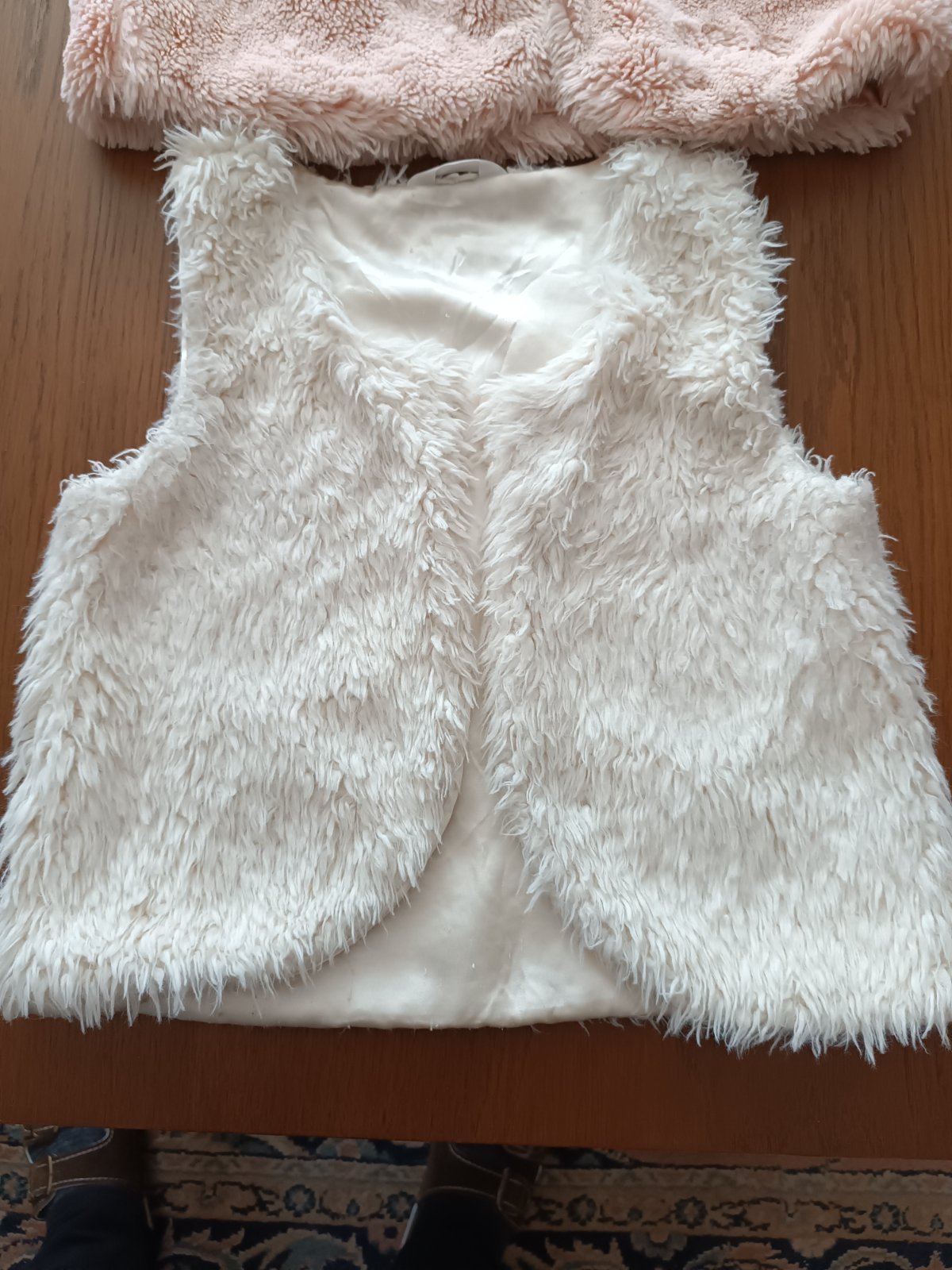 Ponúkam na striedačku nosené vesty bez zapínania, dlhšia ružová Pepco a kratšia biela inej značky. Ružová menej nosená pekný stav, biela viac nosená, podšívka má zatiahnutia.