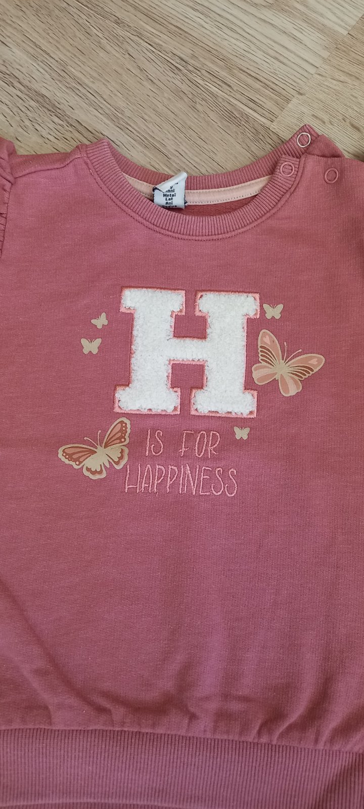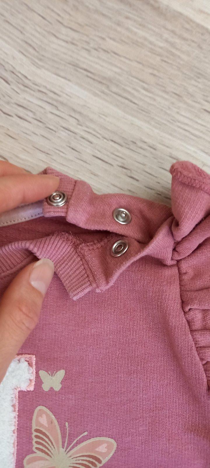 Nádherná mikinka tmavšej staroružovej farby. Super stav, len od novoty chýbal 1 cvok na zapínanie (tak sme ju dostali). Dcéra ju nosila zapnutú na 1 cvočik a bolo to bez problémov.