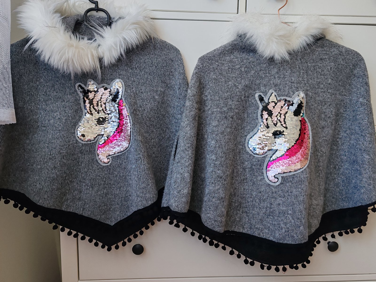 Predám moderné dievčenské pončo v UNI veľkosti. Kúpila som ho, ale dcéra ho vôbec nenosila, takže je úplne nové. Predávam ho, pretože mi len tak stojí v skrini. Kus 5 EU mám dve