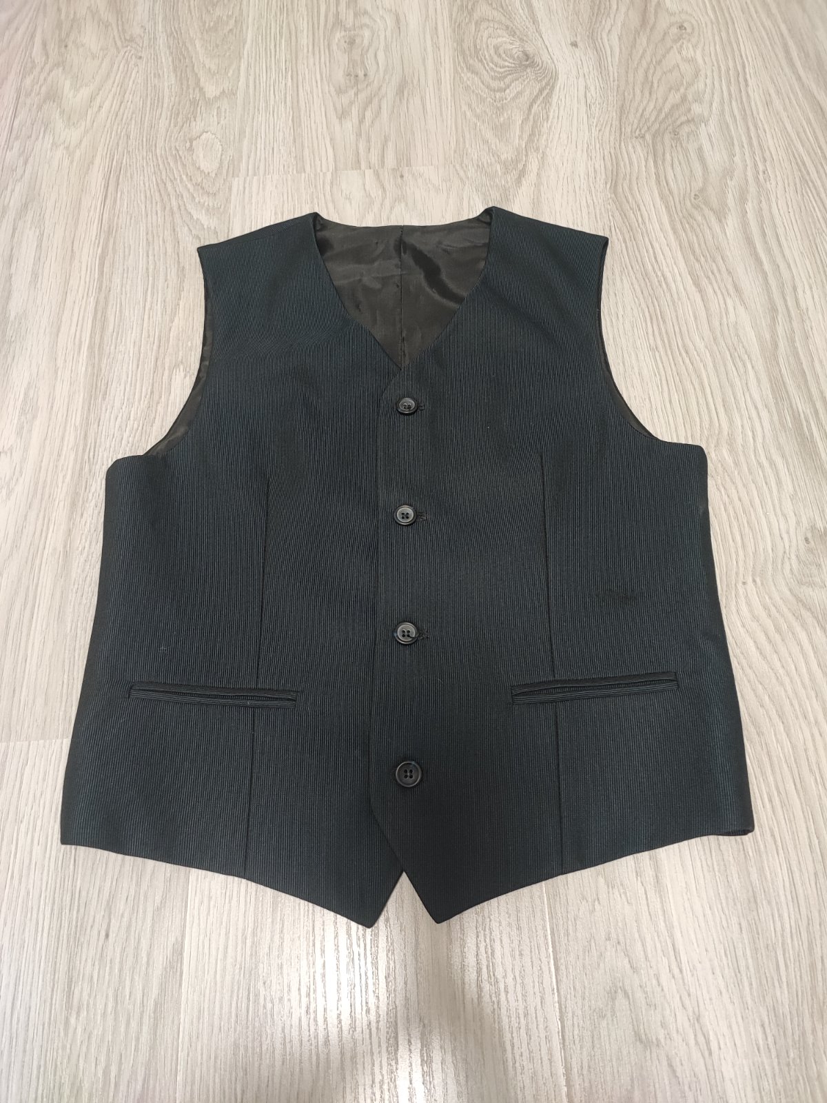 Predám chlapcensku vestu do obleku v tmavomodrej farbe veľkosť 146 jednu chybu má a to že má na ľavej strane zadrete