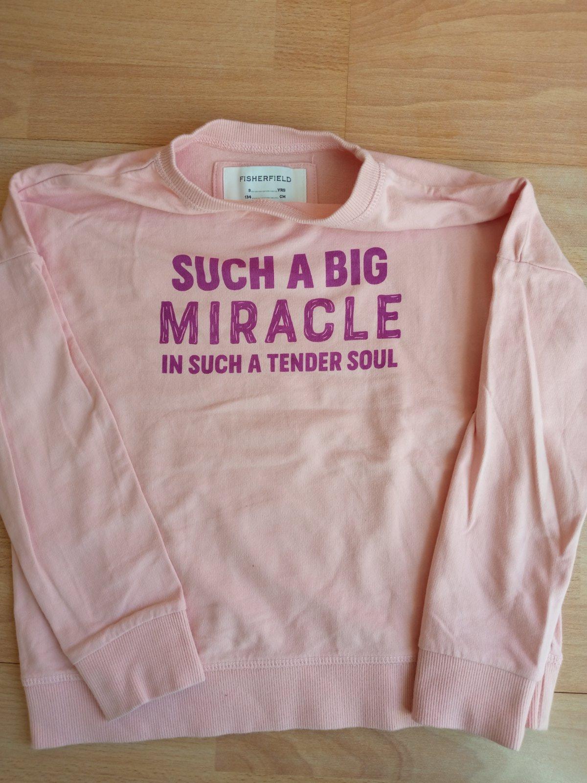 2x mikinky, uvedená veľkosť 140, za mňa skôr 134 ( premerané). Na jednej škvrnka, neskúšala som odstrániť.