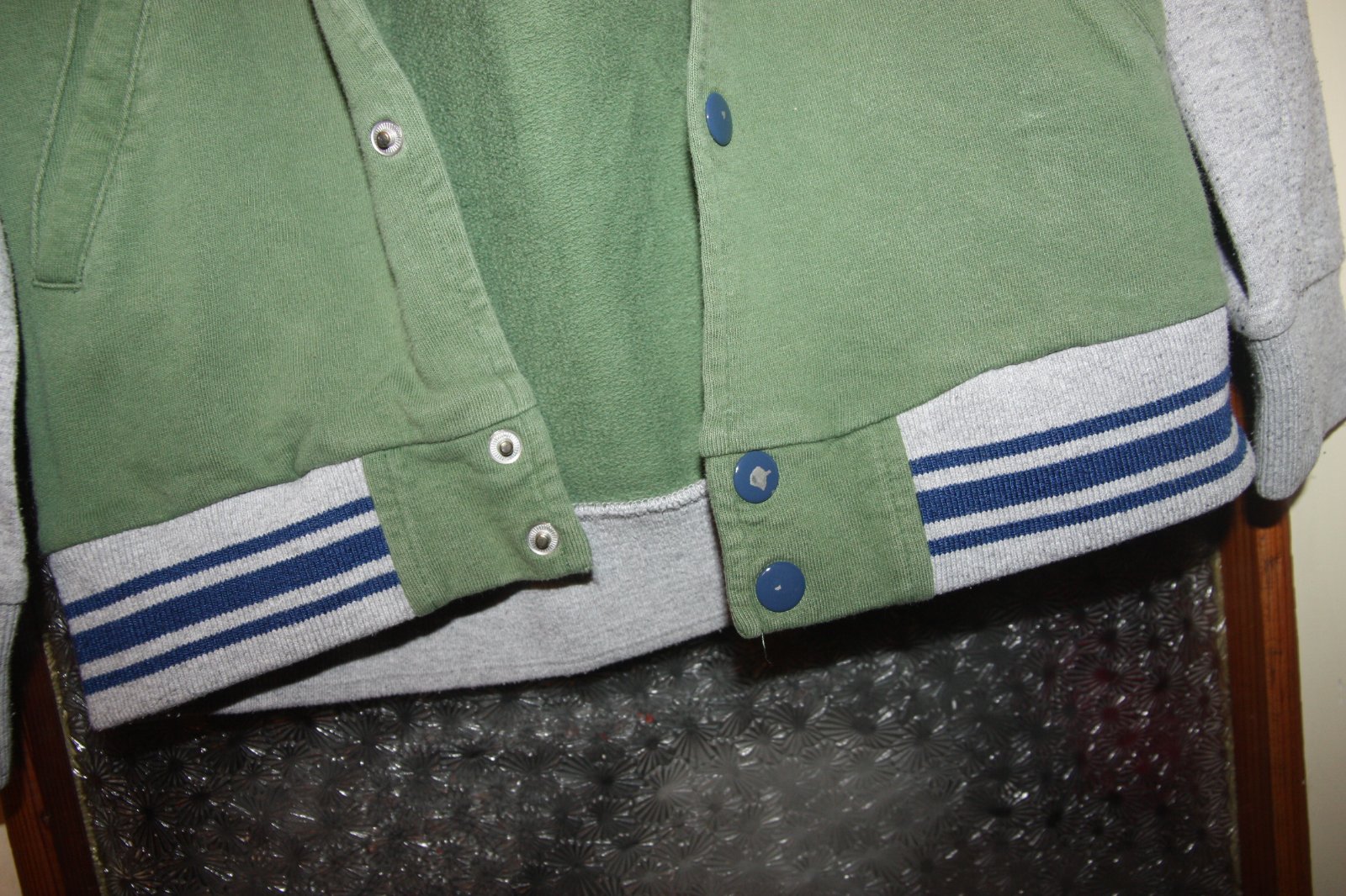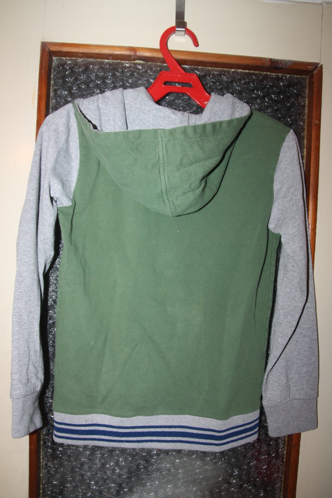 Mikina so zapinanim na cvoky, tie su trochu osuchane, inak zachovala.