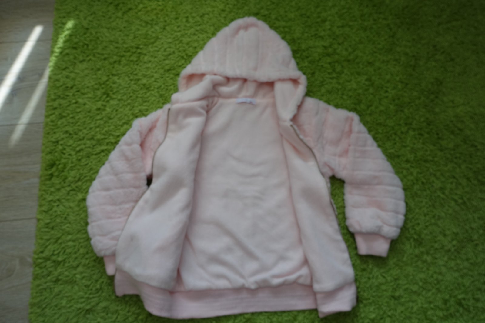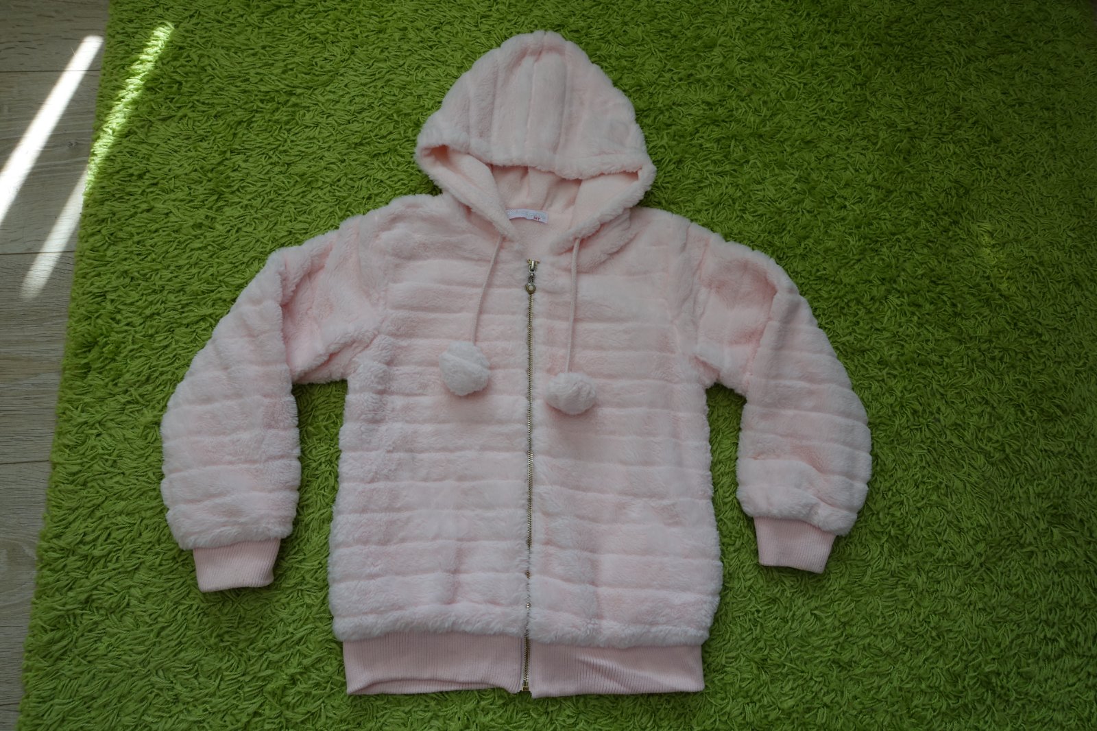 Predám prekrásnu huňatú pastelovo ružovú mikinku značky Mini Angel Baby ideálnu na prechodné obdobie miesto bundy. Je hrubá, teplučká, celá je podteplená flísom aj v kapucni. Veľkosť je síce uvedená na 14 rokov, ale určite na veľkosť nesedí. My sme ju nosili na konci veľkosti 140, ale ideálna nám bola vo veľkosti 146. Riaďte sa prosím rozmermi. Bola nosená počas prechodného obdobia na striedačku aj s inými, ale mali sme na striedačku veľa aj iných mikín a búnd. Preto je vo veľmi peknom stave. Nemá žiadne poškodenia. Odporúčam. Celková dĺžka je 57 cm a šírka je 44 cm. Dĺžka rukáviku od pliecka je 59 cm a od ramena 51 cm. (G)