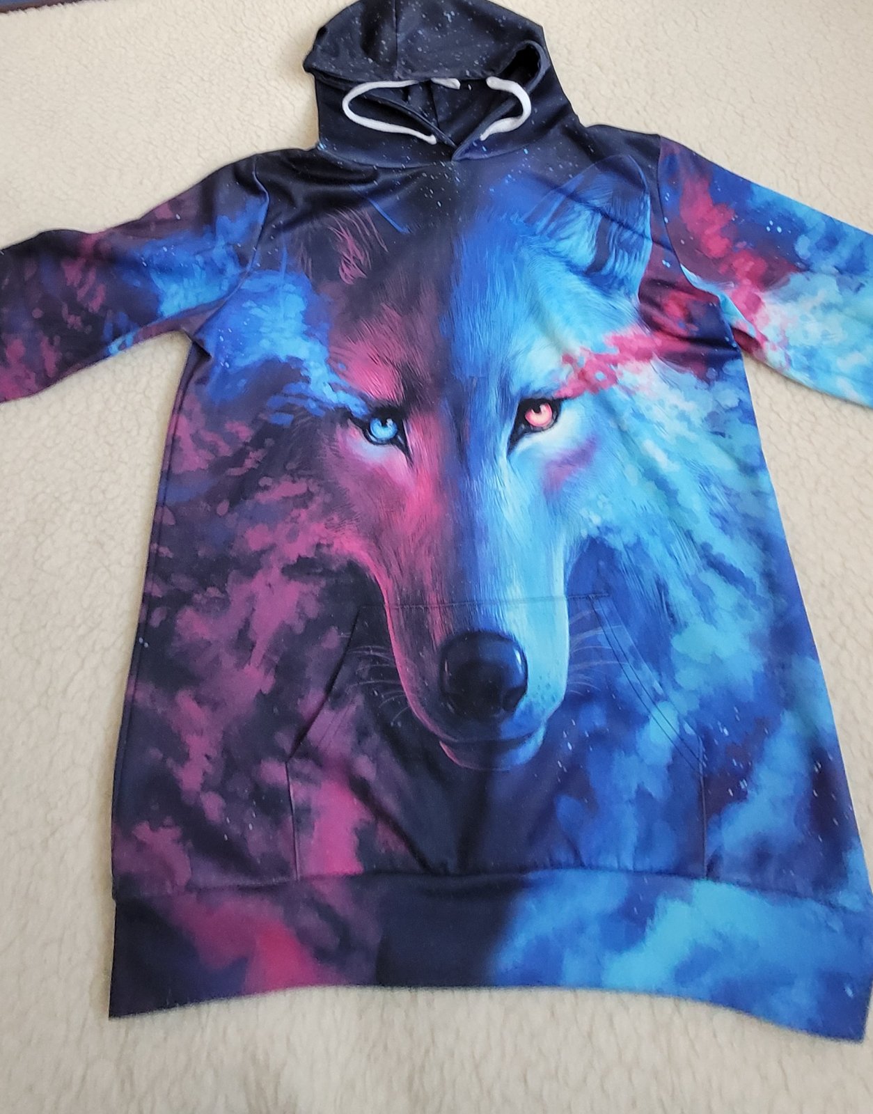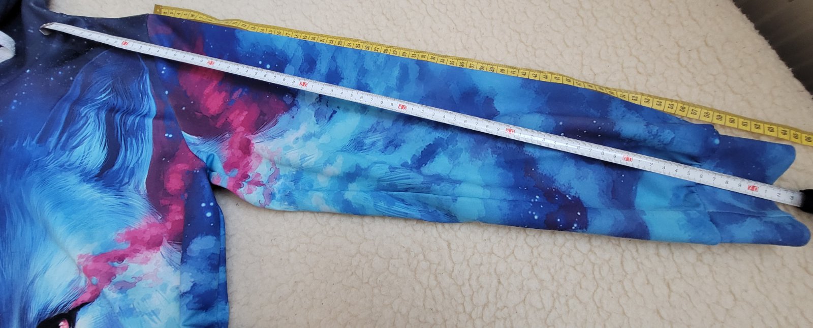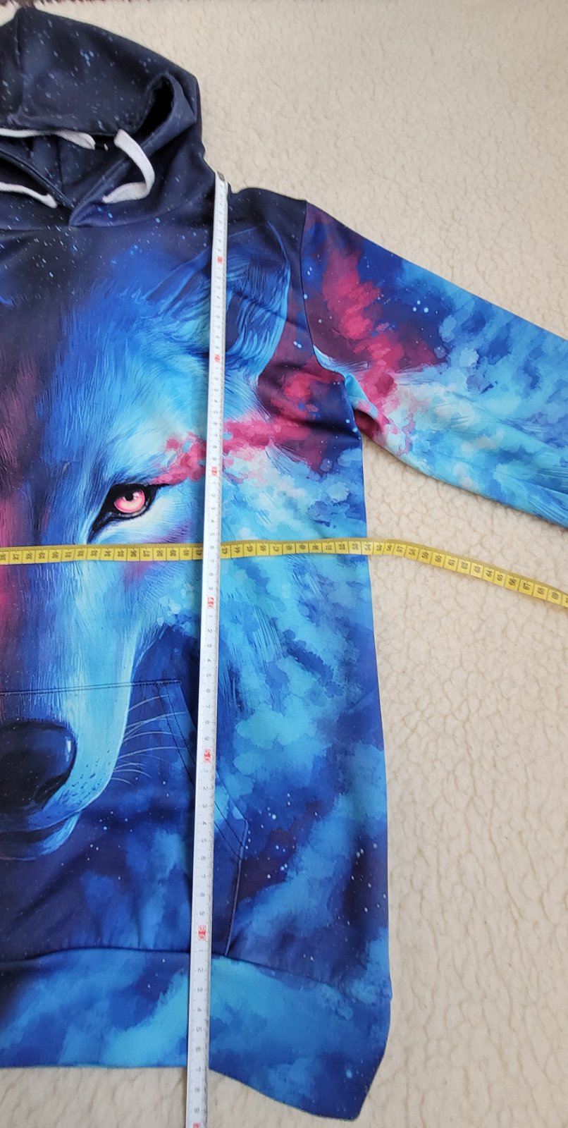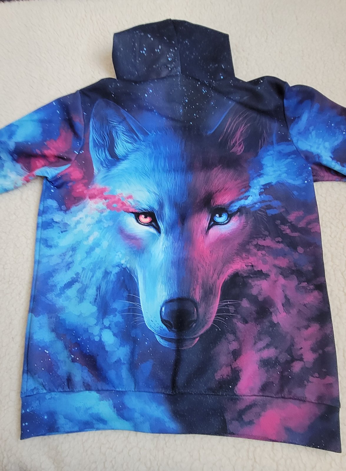Mikina s motívom vpredu aj vzadu. Nosená, mini žmolky sú.