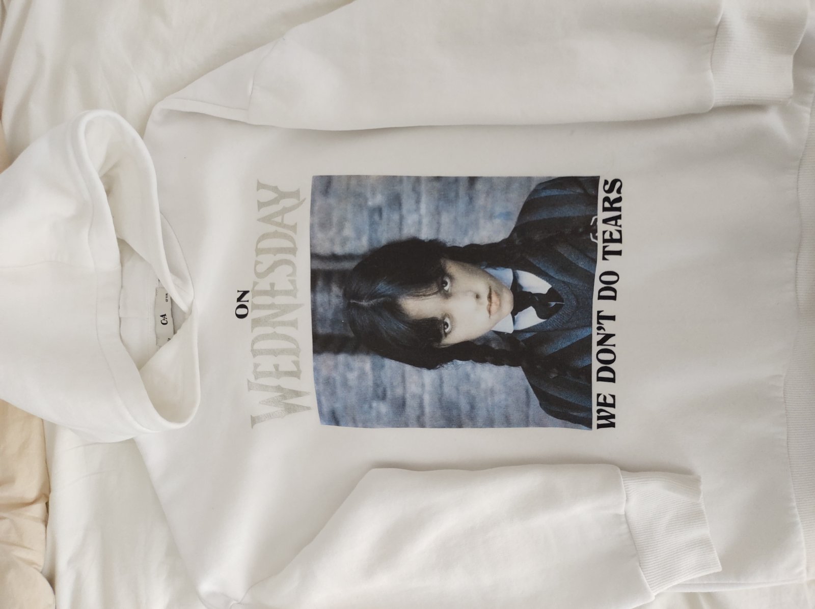 Biela tematická mikina, nosená jednu sezónu, bez poškodenia.