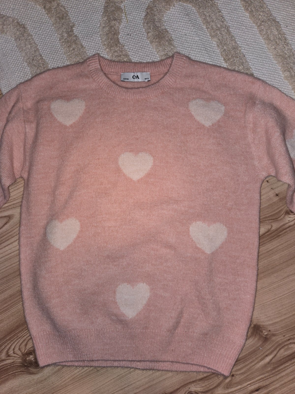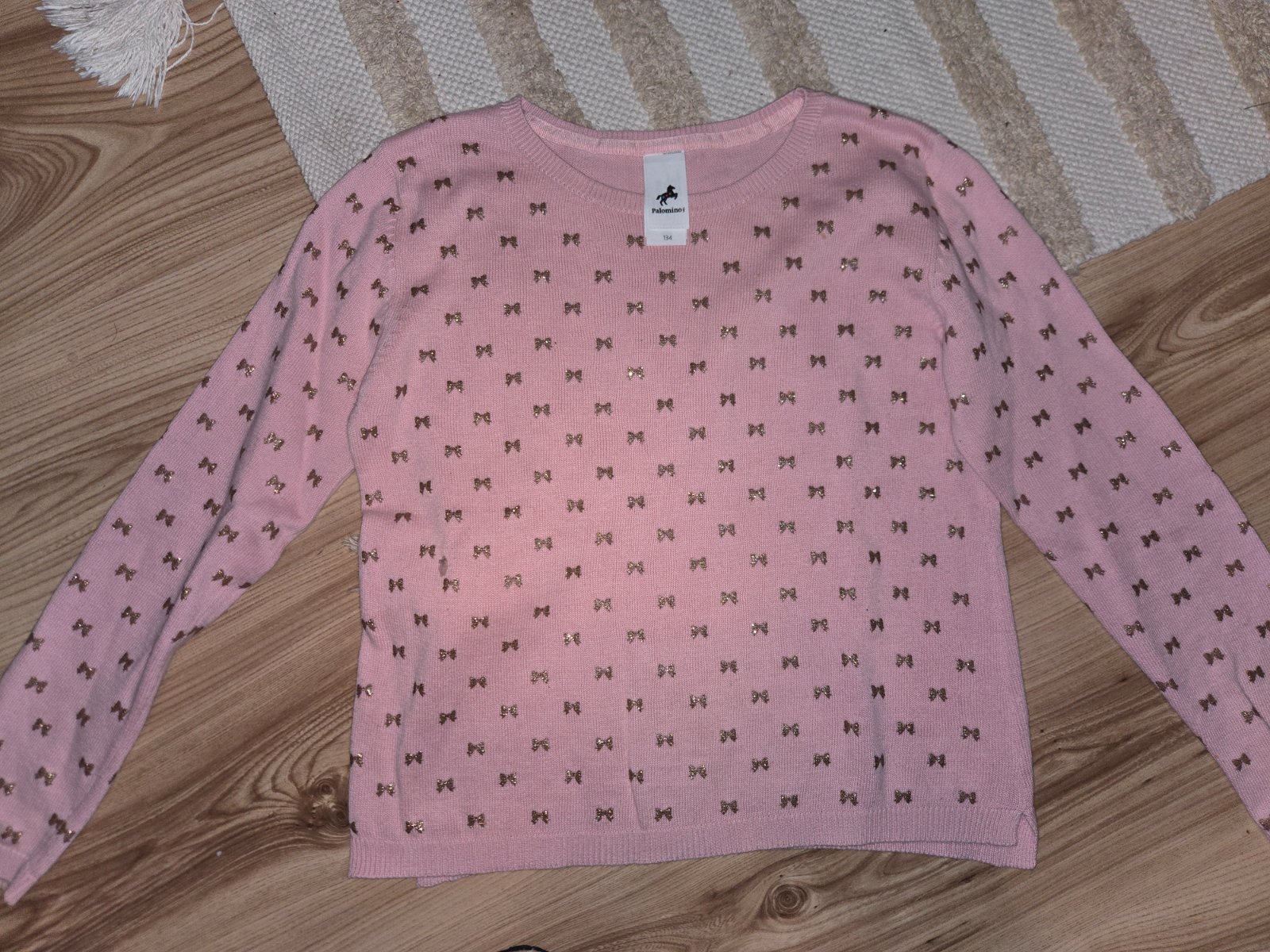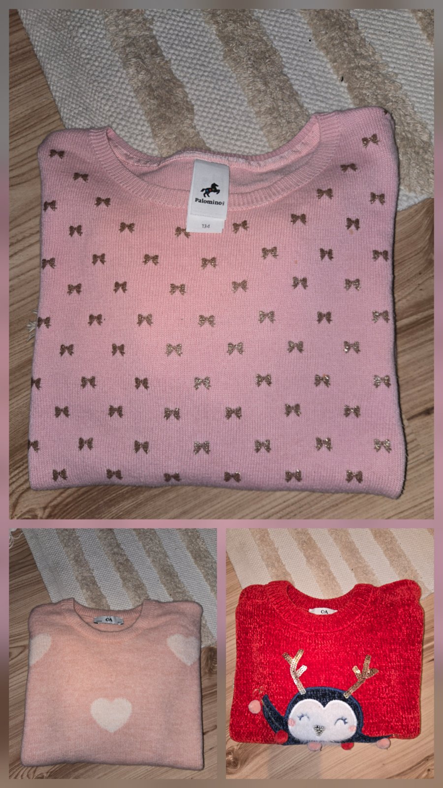 Ponúkam na predaj v dobrom stave pulóvre. Ružový s mašlickami 134 (2eurá)červený 140 za 3eura , ružový so srdiečkami nový veľ.140 za 4,50eura. + poštovné 3,5 prevodom
