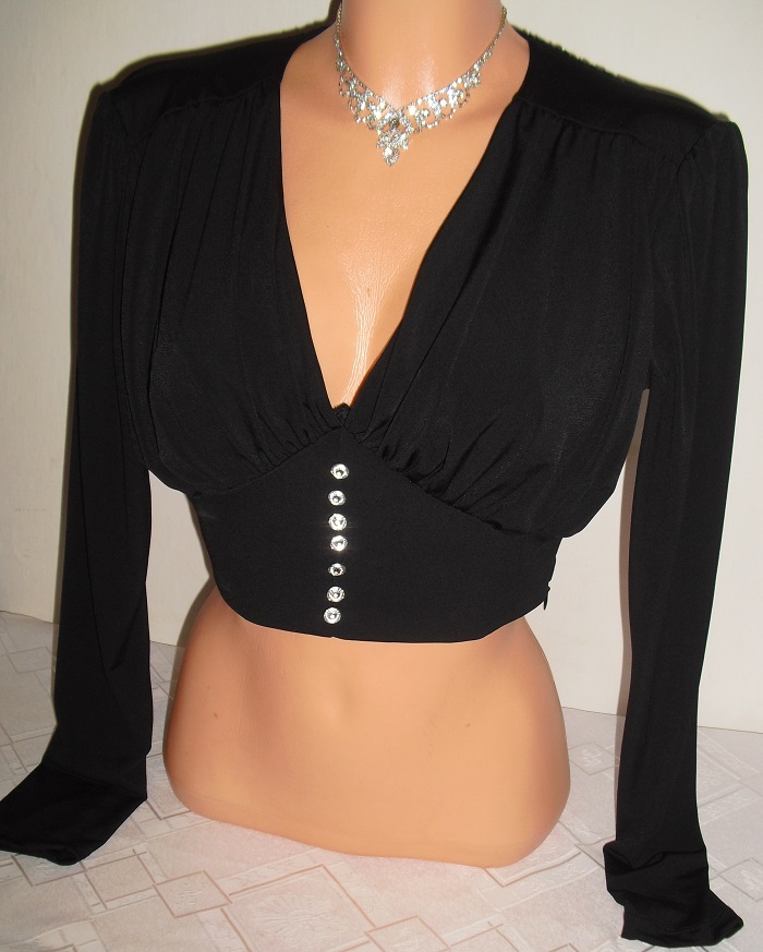 predam nadherne cierne bolerko, elegantne, detailne zdobene a tvarovane, nadhernom stave, znackove trendyol, velkost uvedena 36/s. na boku sa zapina na zips elegantne, dlzka 36 cm, sirka dole 34,5 cm x 2 a az 36 cm x 2, sirka hore sa neda lebo je lambadovo navolno tvarovane, nosi sa navolno na postavicke.
